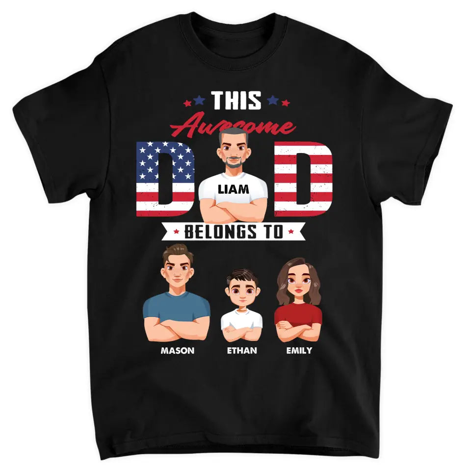Personalized Custom T-shirt - 4th Of July, Father's Day, Birthday Gift For Dad, Grandpa - This Awesome Dad Belongs To
