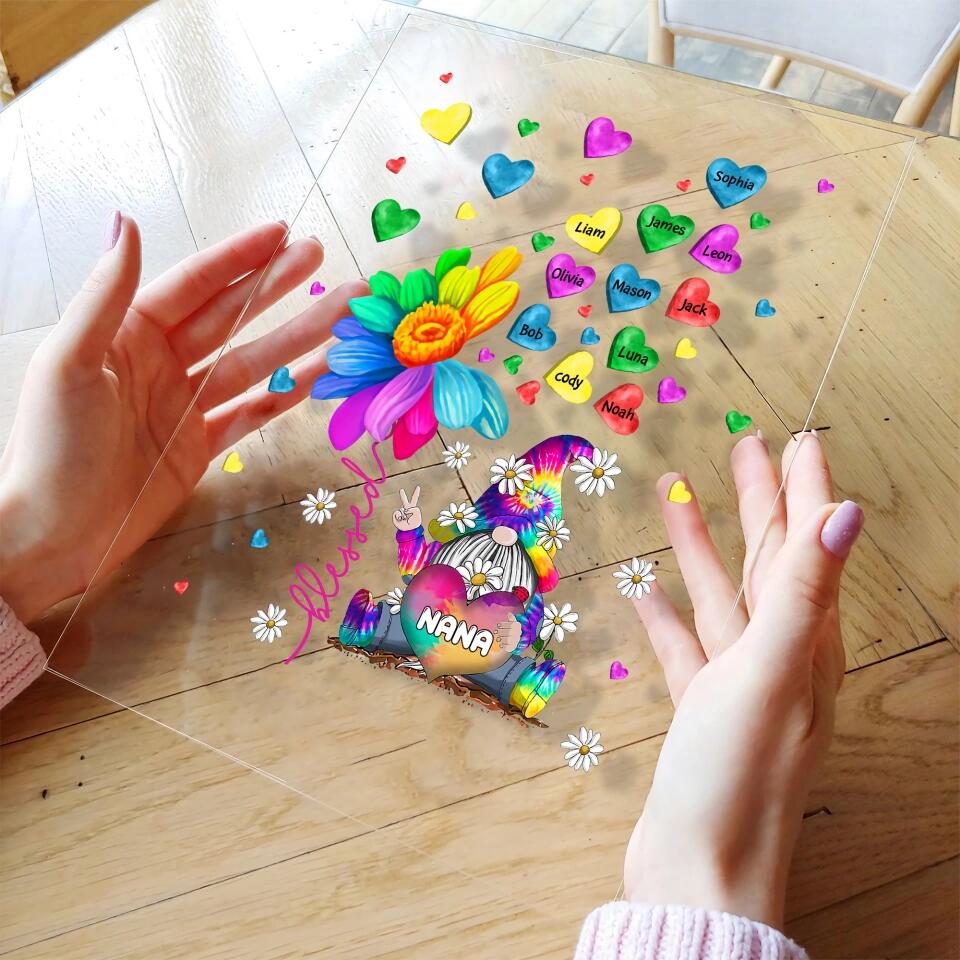Personalized Acrylic Plaque - Gift For Grandma - Colorful Flower Gnome Nana ARND037