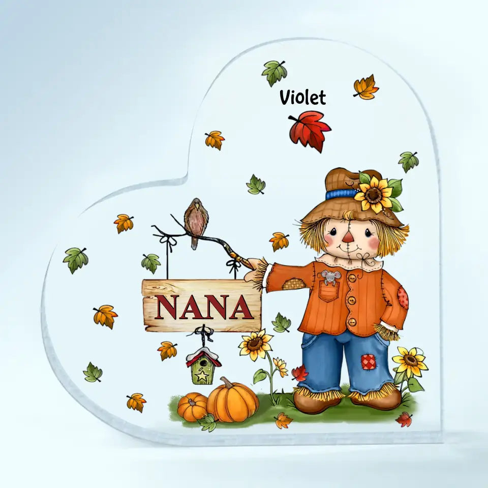 Personalized Custom Heart-shaped Acrylic Plaque - Mother's Day Gift For Mom, Grandma - Grandma Scarecrow Fall