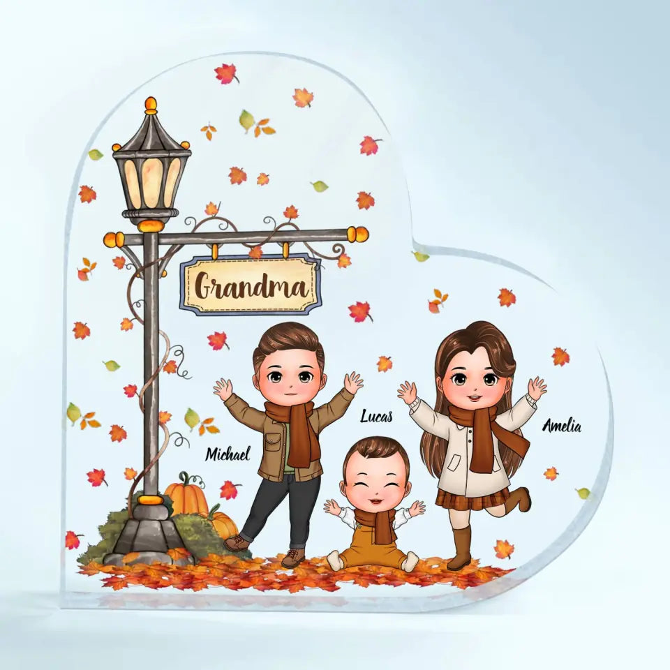 Personalized Custom Heart-shaped Acrylic Plaque - Mother's Day Gift For Mom, Grandma - Grandma Fall With Grandkids