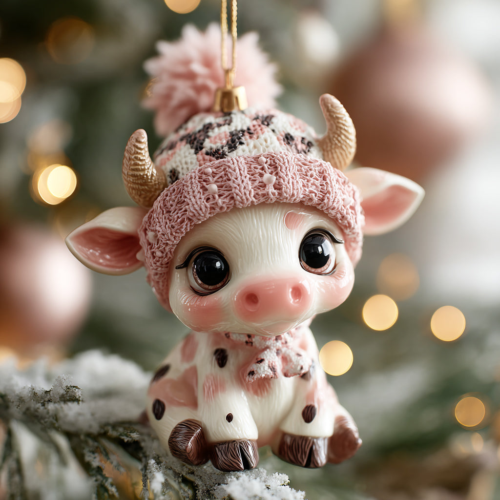 Pinky Winter Cow Mica Ornament NCU0HT056