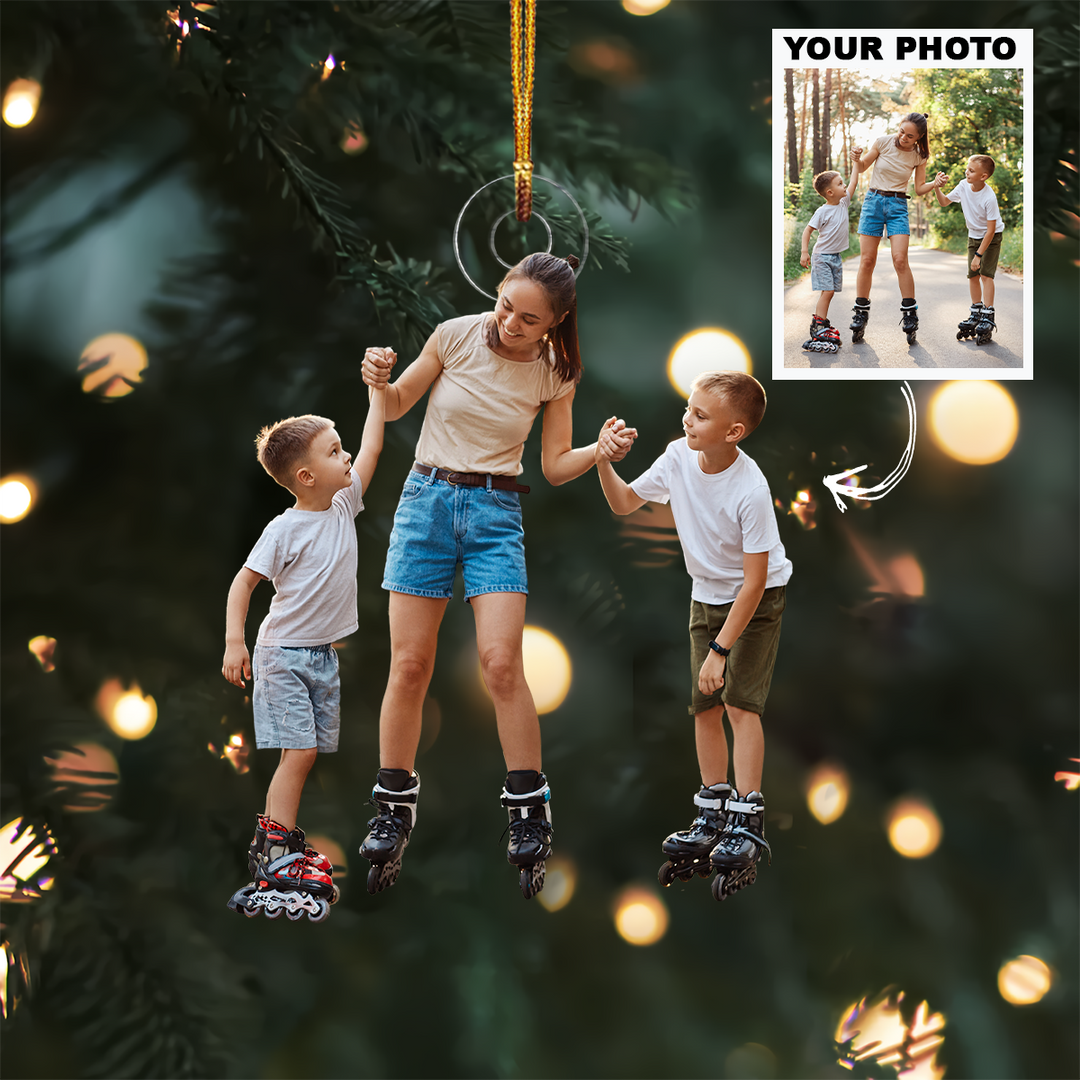 Roller Skating With Family - Personalized Custom Photo Mica Ornament - Christmas Gift For Family, Family Members, Roller Skater