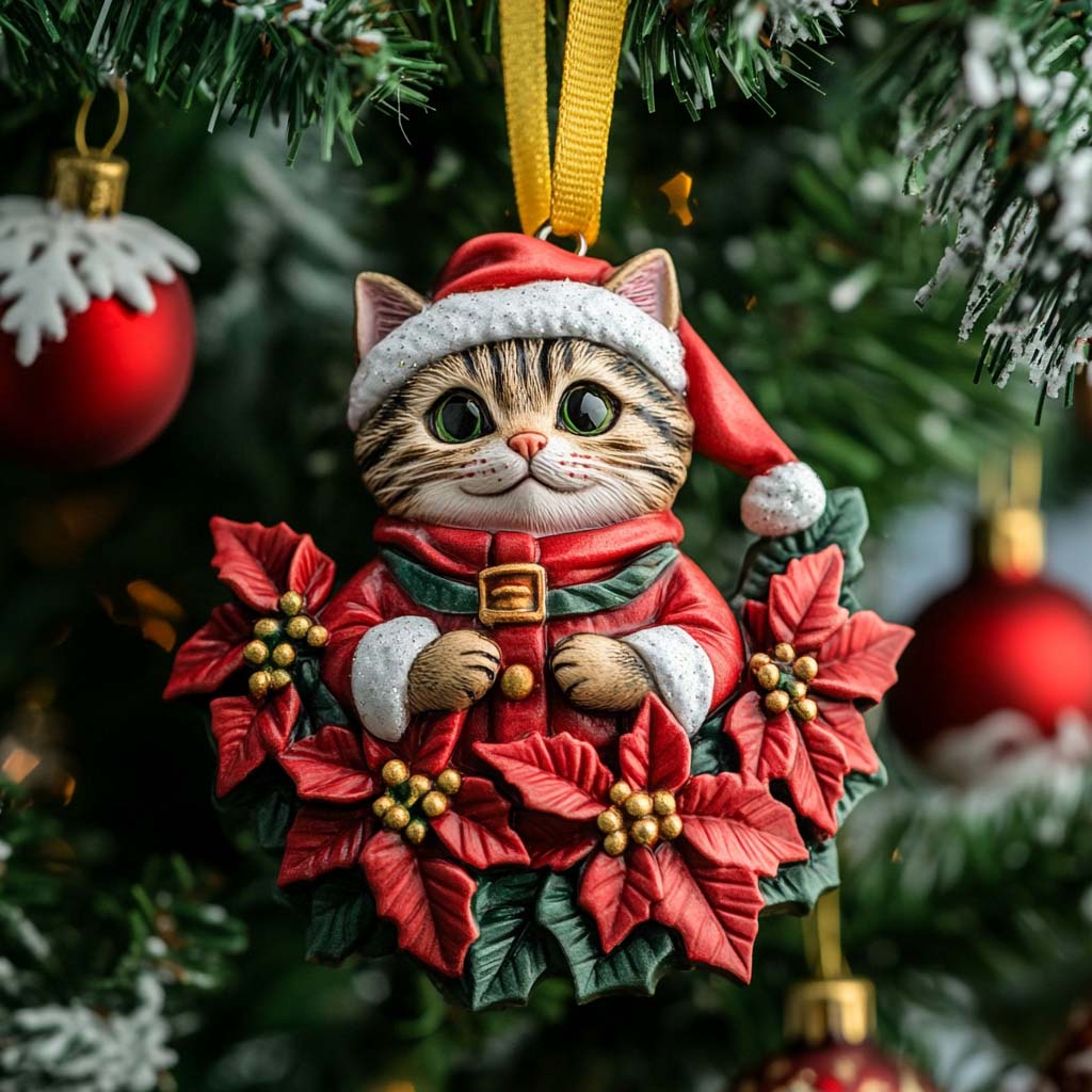 Santa Purr - Personalized Photo Mica Ornament - Customized Your Photo Ornament - Christmas Gift For Pet Lovers