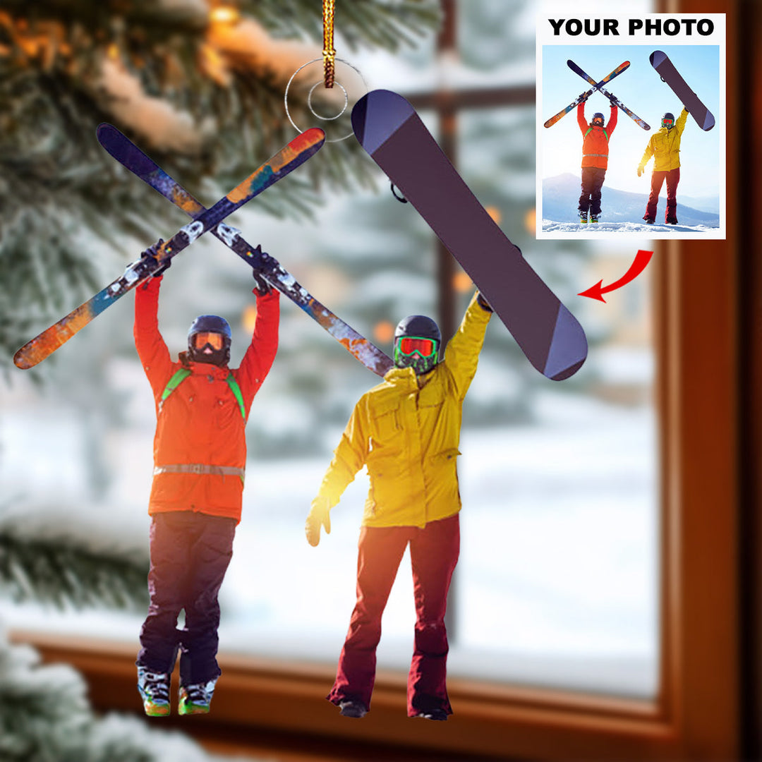 Ski Tracks - Personalized Photo Mica Ornament - Christmas Gift For Skiing Players, Skiing Lovers