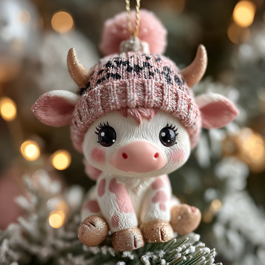 Sweet Moo in Knit Hat Mica Ornament NCU0HT057