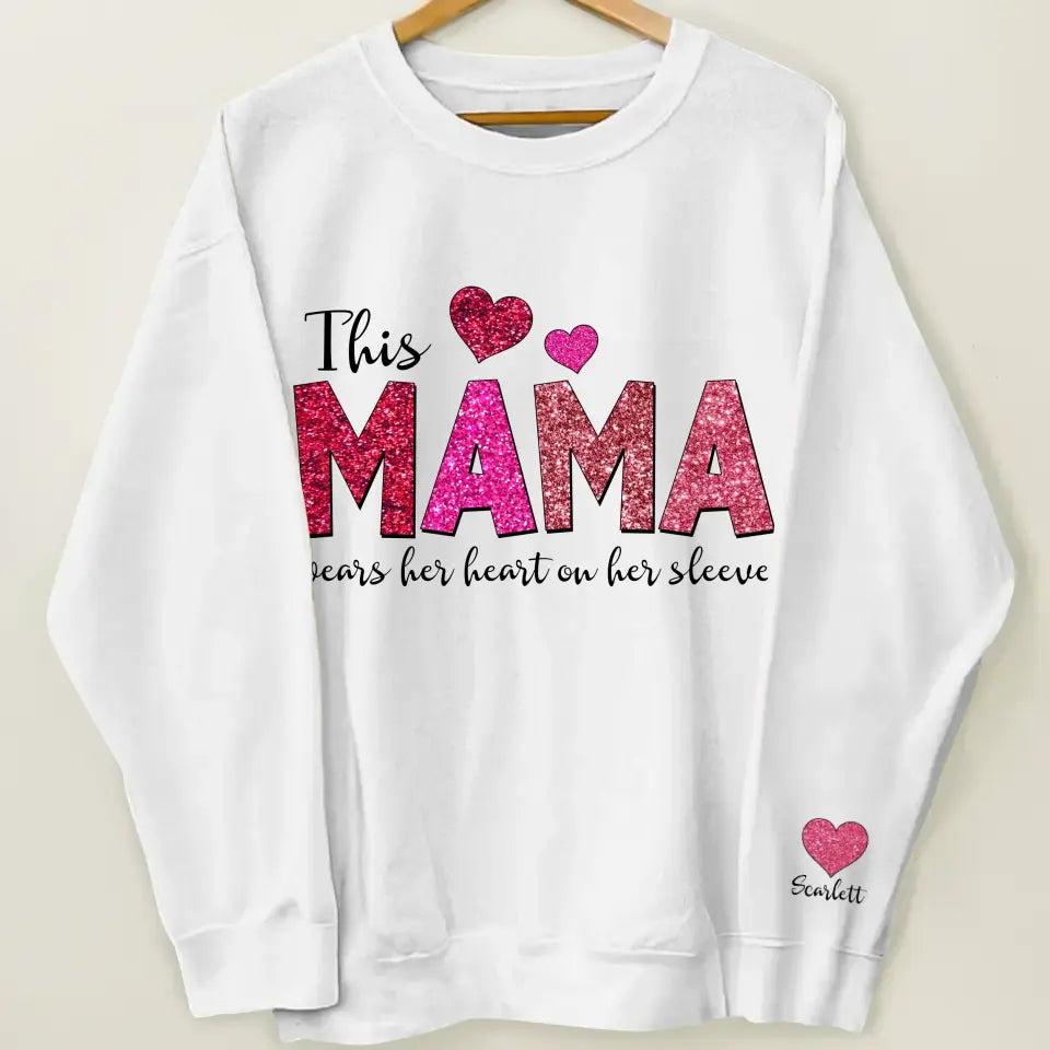 This Mama Wears Her Heart On Her Sleeve - Personalized Custom Sweatshirt - Mother's Day Gift For Grandma, Mom, Family Members