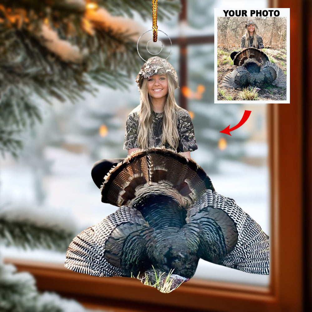 Turkey Hunt - Personalized Photo Mica Ornament - Gift For Hunting Lovers, Family Members