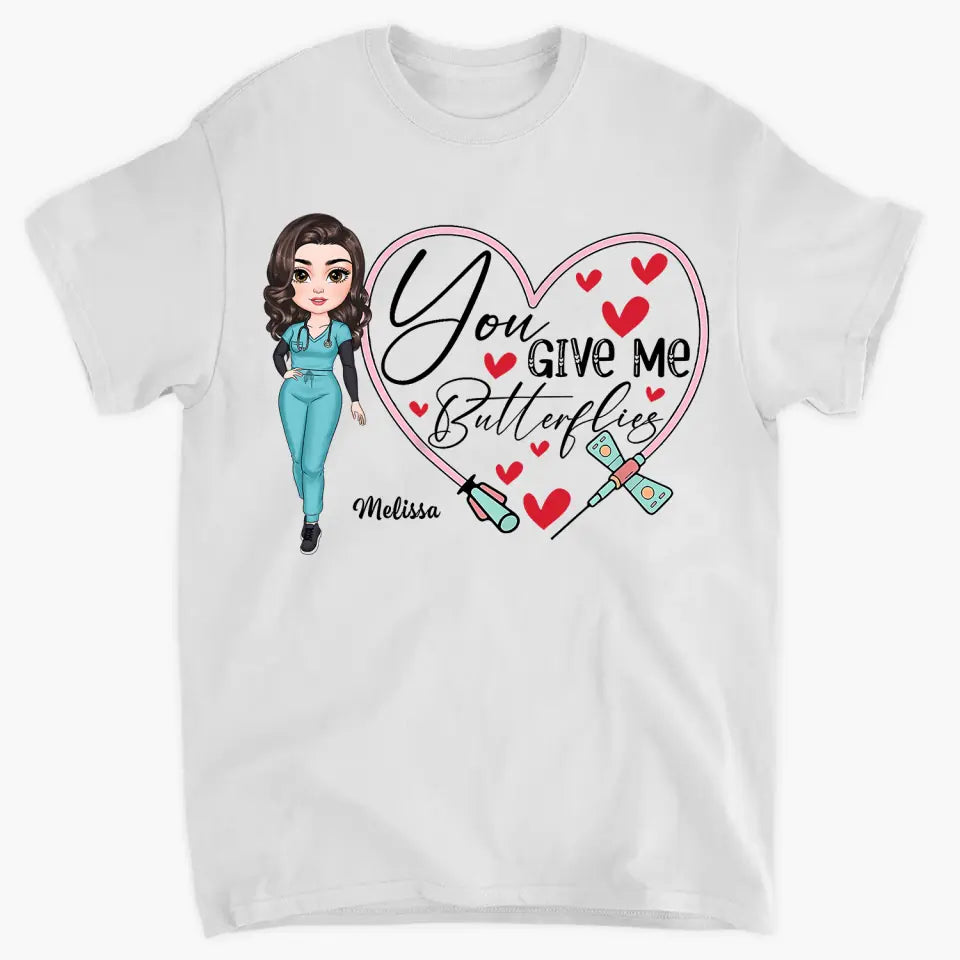 You Give Me Butterfiles - Personalized Custom T-shirt - Nurse's Day, Appreciation Gift For Nurse