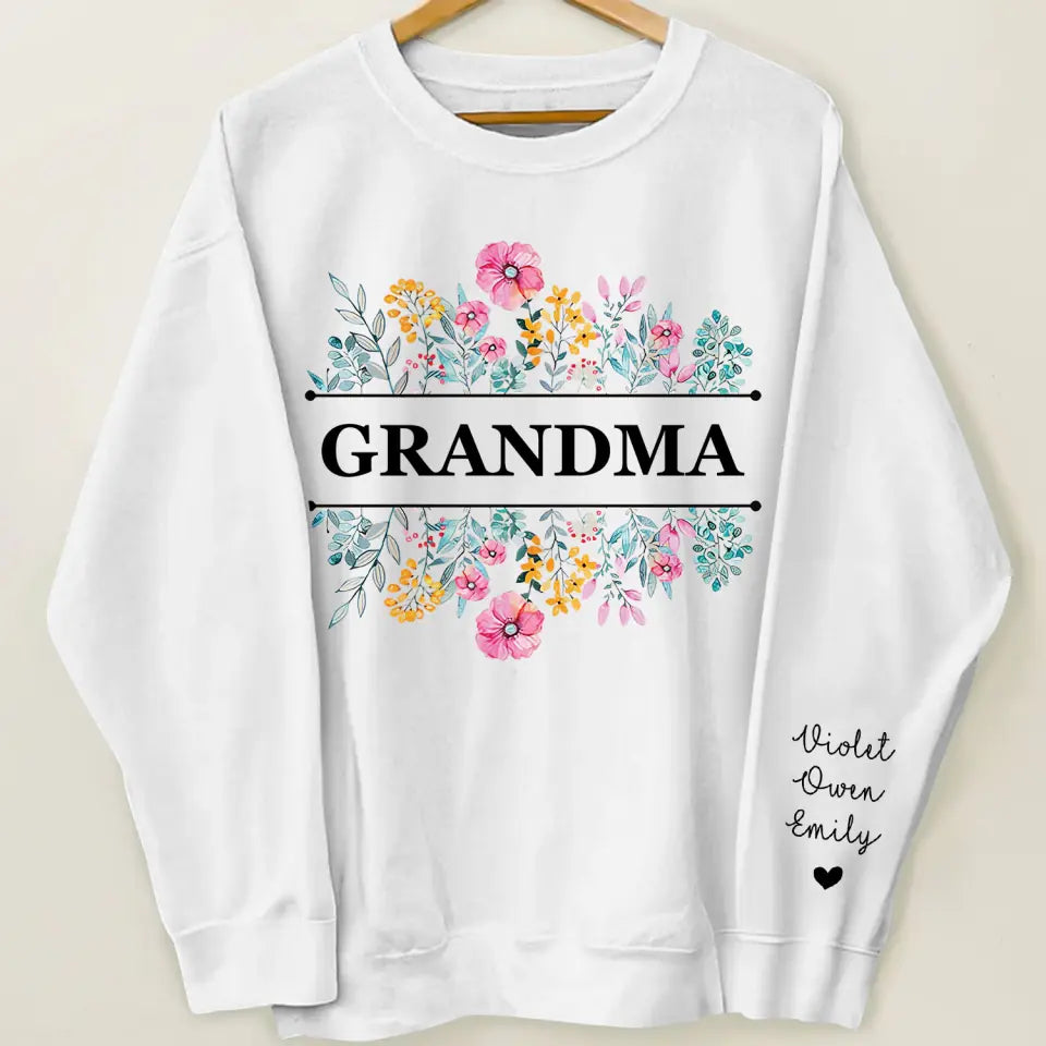Love Flowers In Grandma's Garden - Personalized Custom Sweatshirt - Mother's Day Gift For Grandma, Family Members