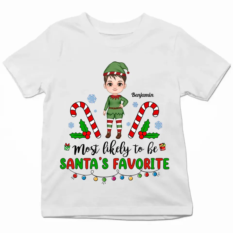 Most Likely To Be Santa's Favourite - Personalized Custom Youth T-shirt - Christmas Gift For Kid, Family Members