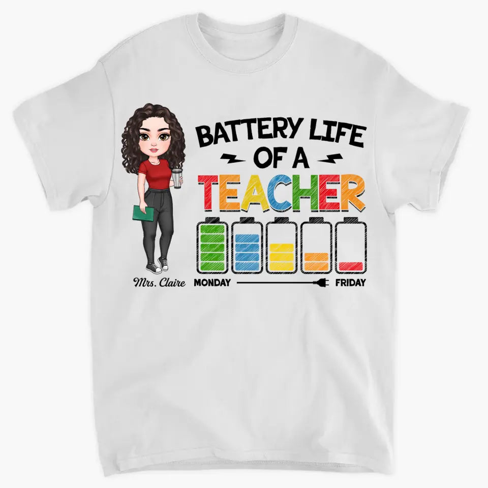 Personalized Custom T-shirt - Teacher's Day, Appreciation Gift For Teacher - Battery Life Of A Teacher