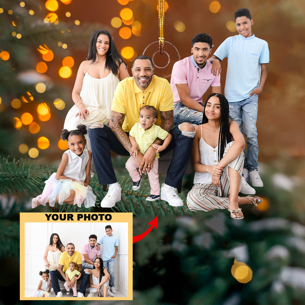 Customized Your Photo Ornament Happy Family - Personalized Photo Mica Ornament - Christmas Gift For Family Member