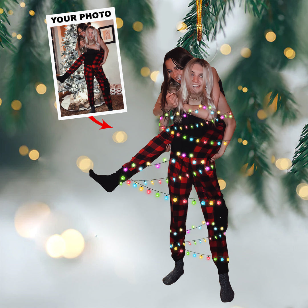 Family With Christmas Lights - Custom Photo Mica Ornament - Christmas, Birthday Gift For Family Members, Couple, Friends, Besties UPL0PD028