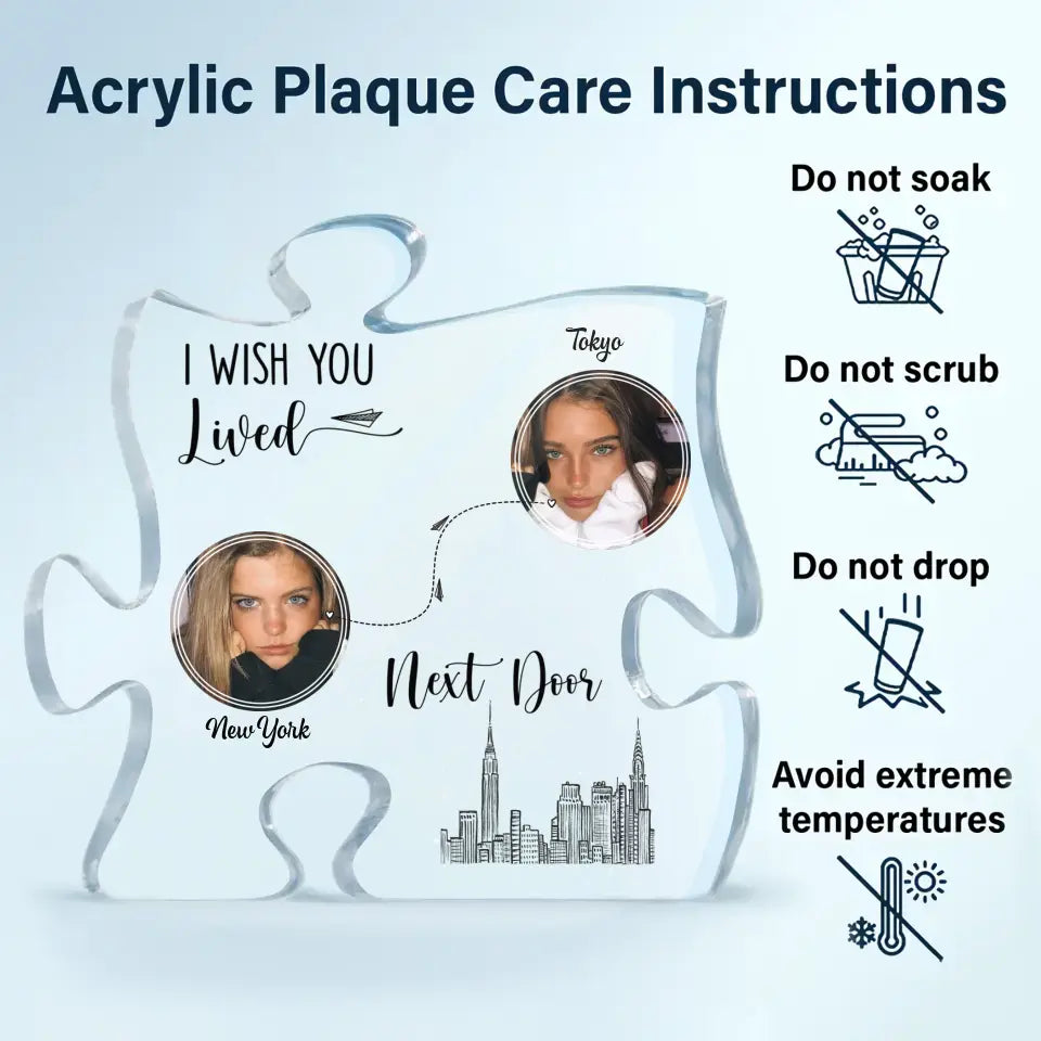I Wish You Lived Next Door - Personalized Custom Puzzle Acrylic Plaque - Christmas Gift For Besties, Friends