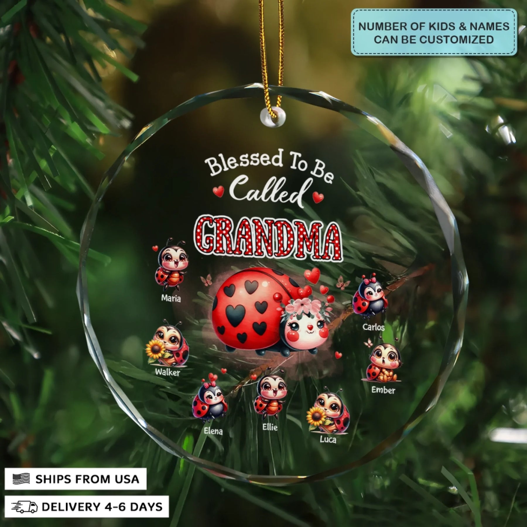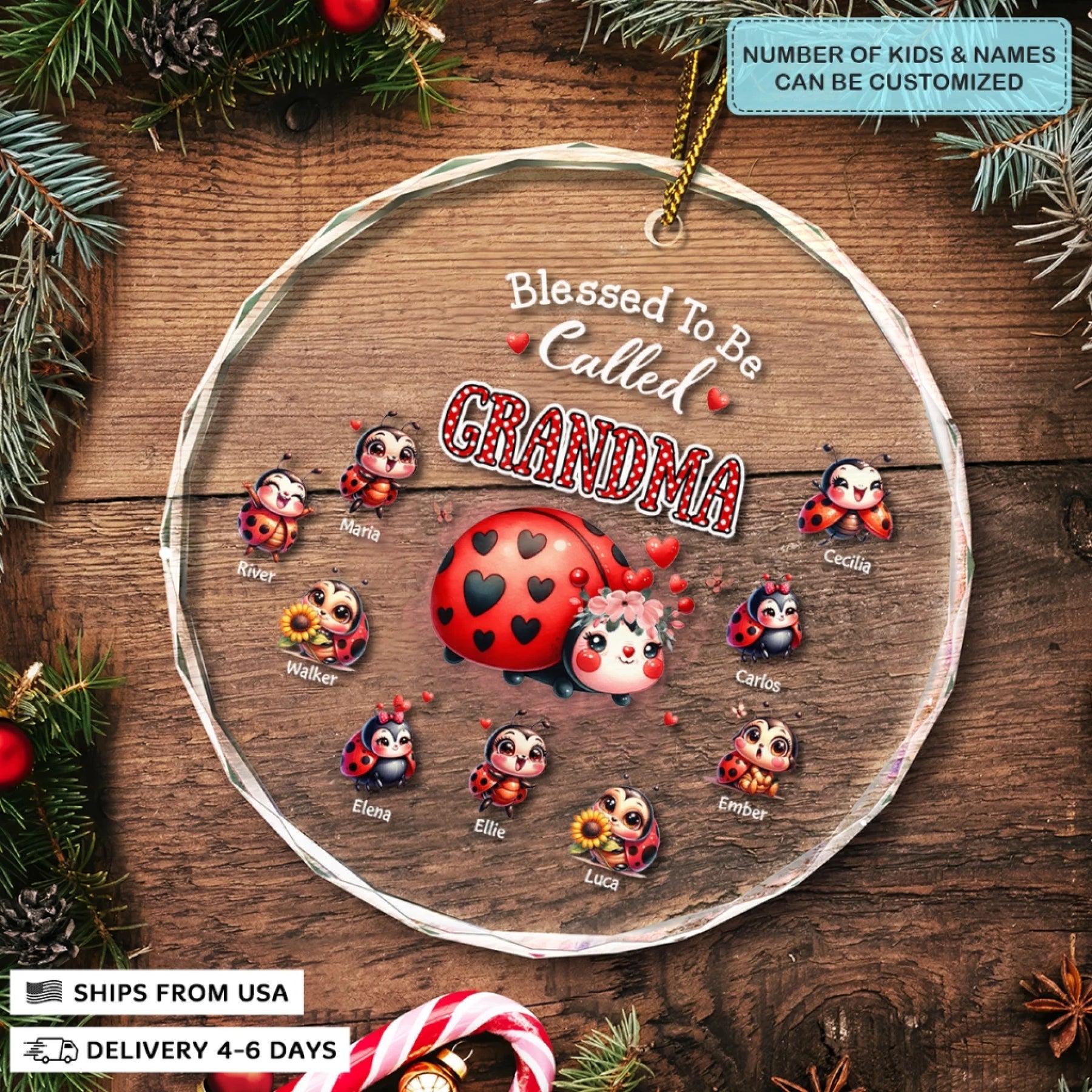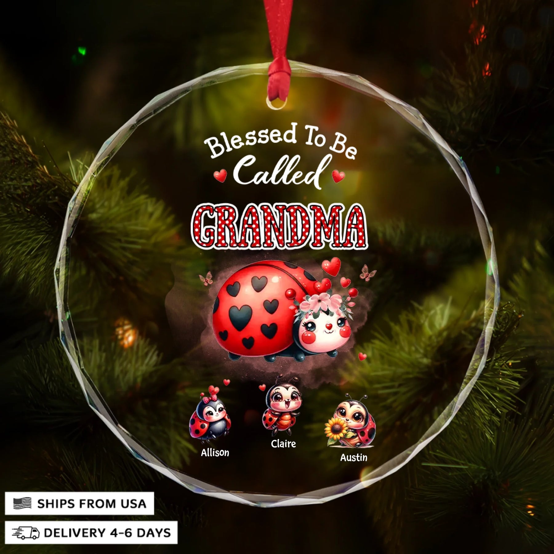 Blessed To Be Called Grandma - Circle Glass Ornament - Christmas Gift For Grandma, Family Members