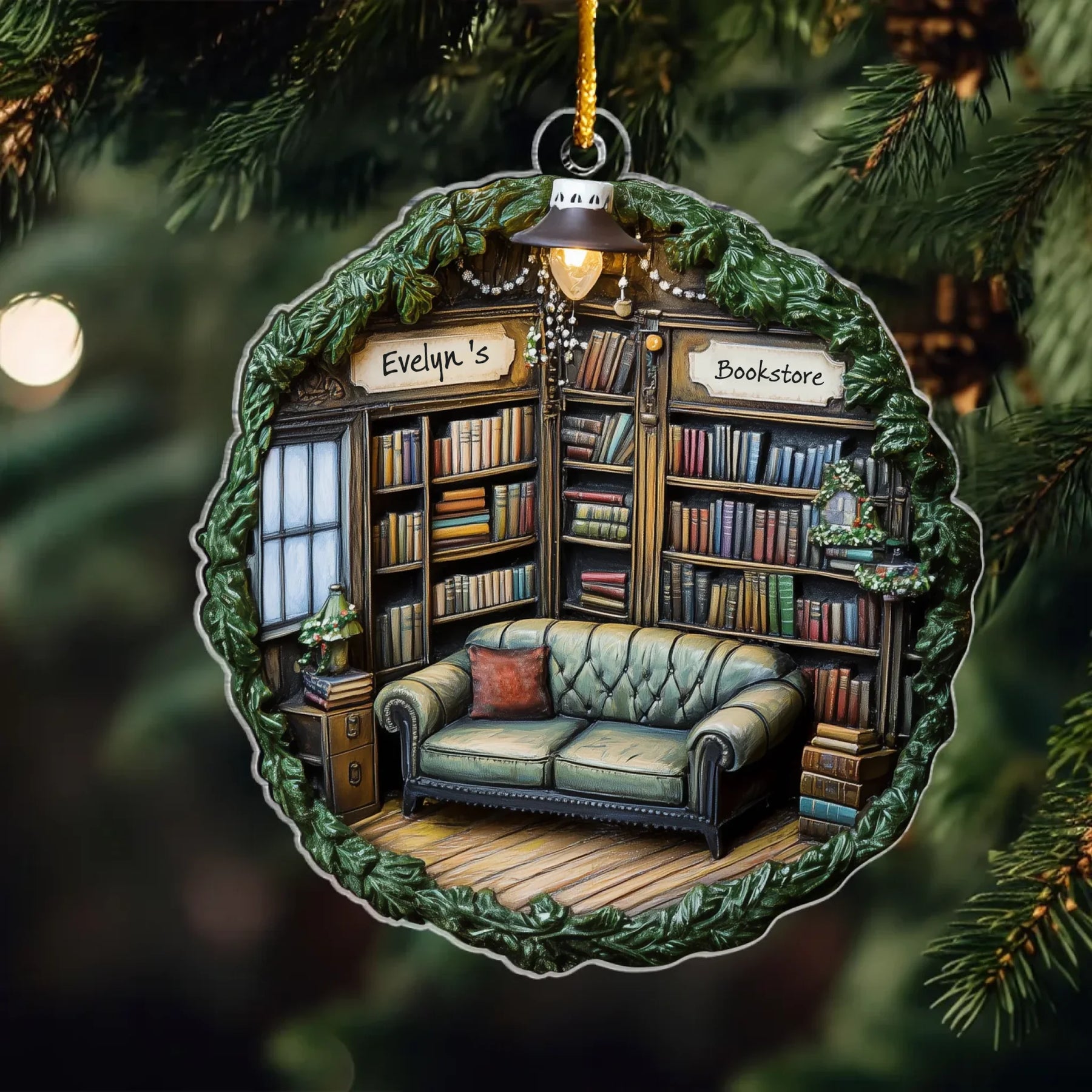 Bookish Bliss - Personalized Mica Ornament - Gift For Bookish Lovers