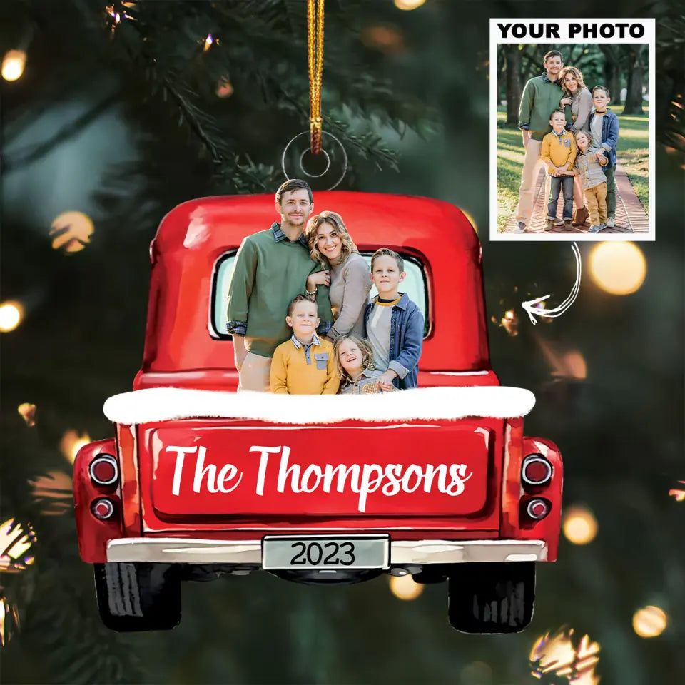 Family Red Truck Christmas - Personalized Custom Photo Mica Ornament - Christmas Gift For Family Members AGCHD041