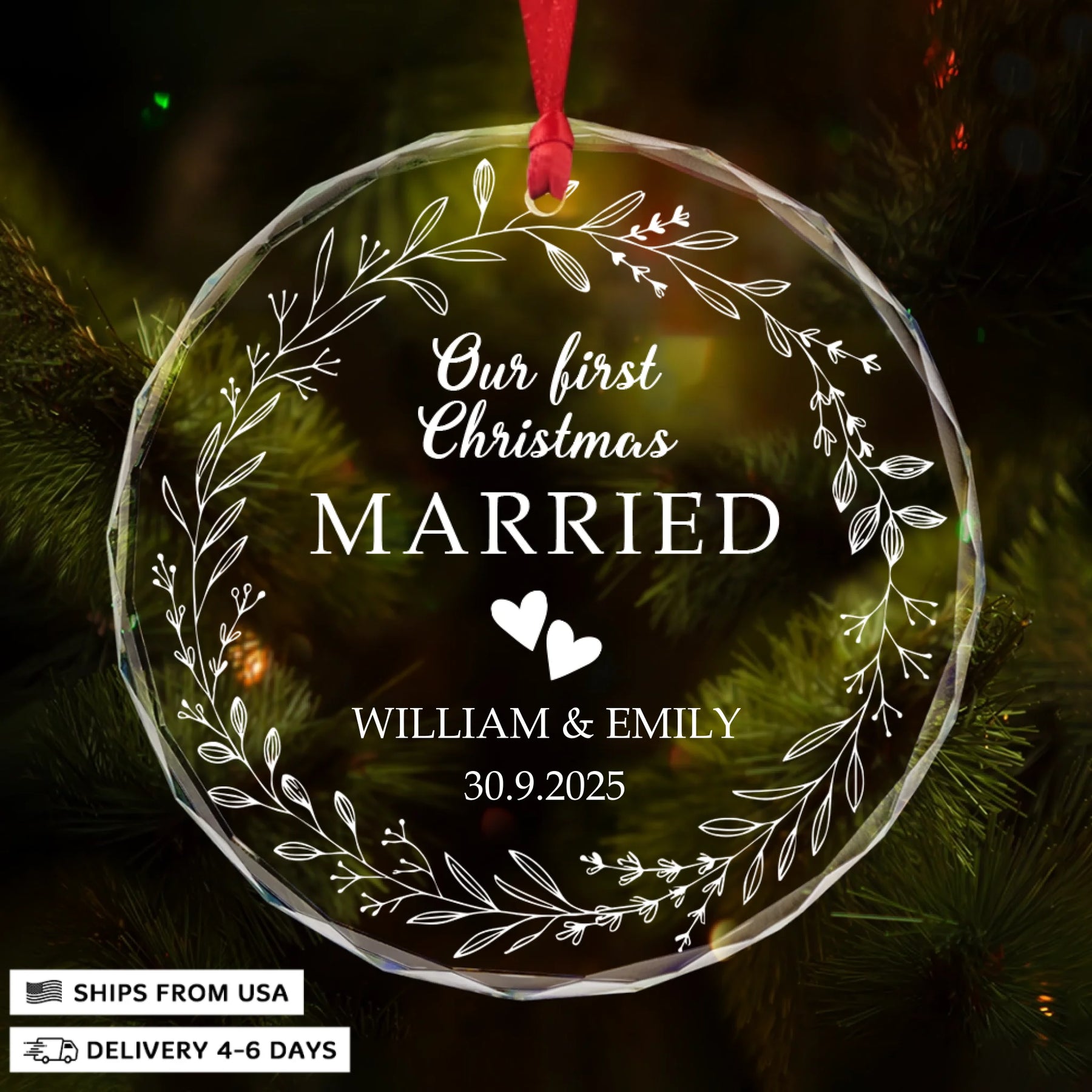 First Christmas, Endless Love - Circle Glass Ornament - Christmas Gift For Couples, Newlyweds, Wife, Husband