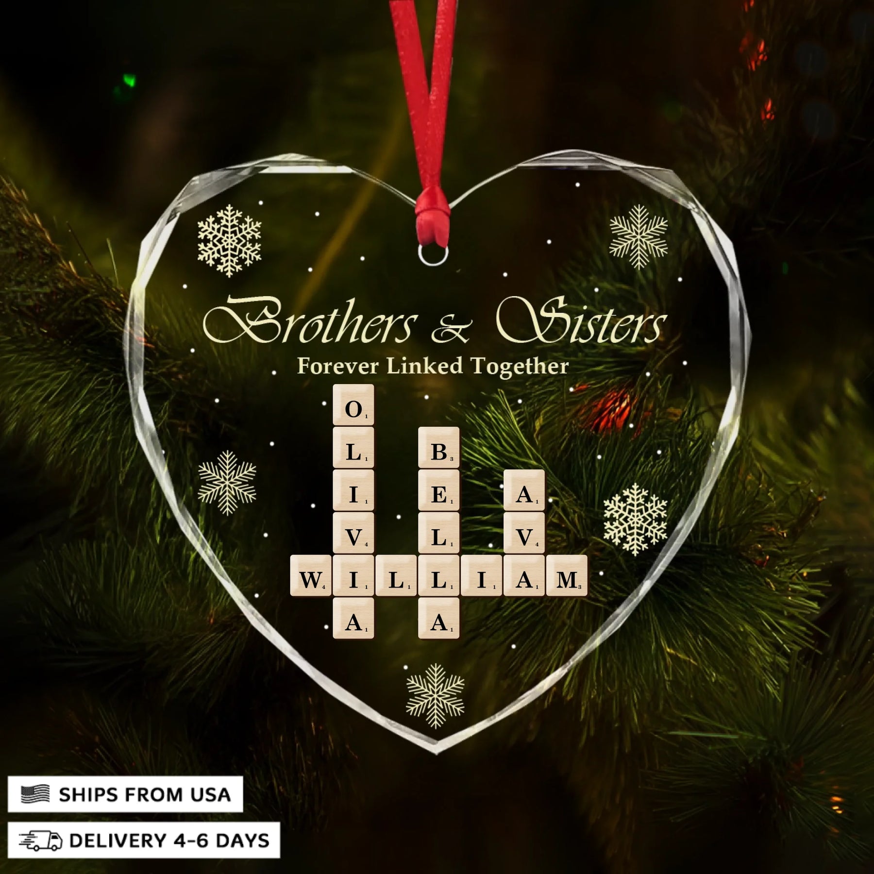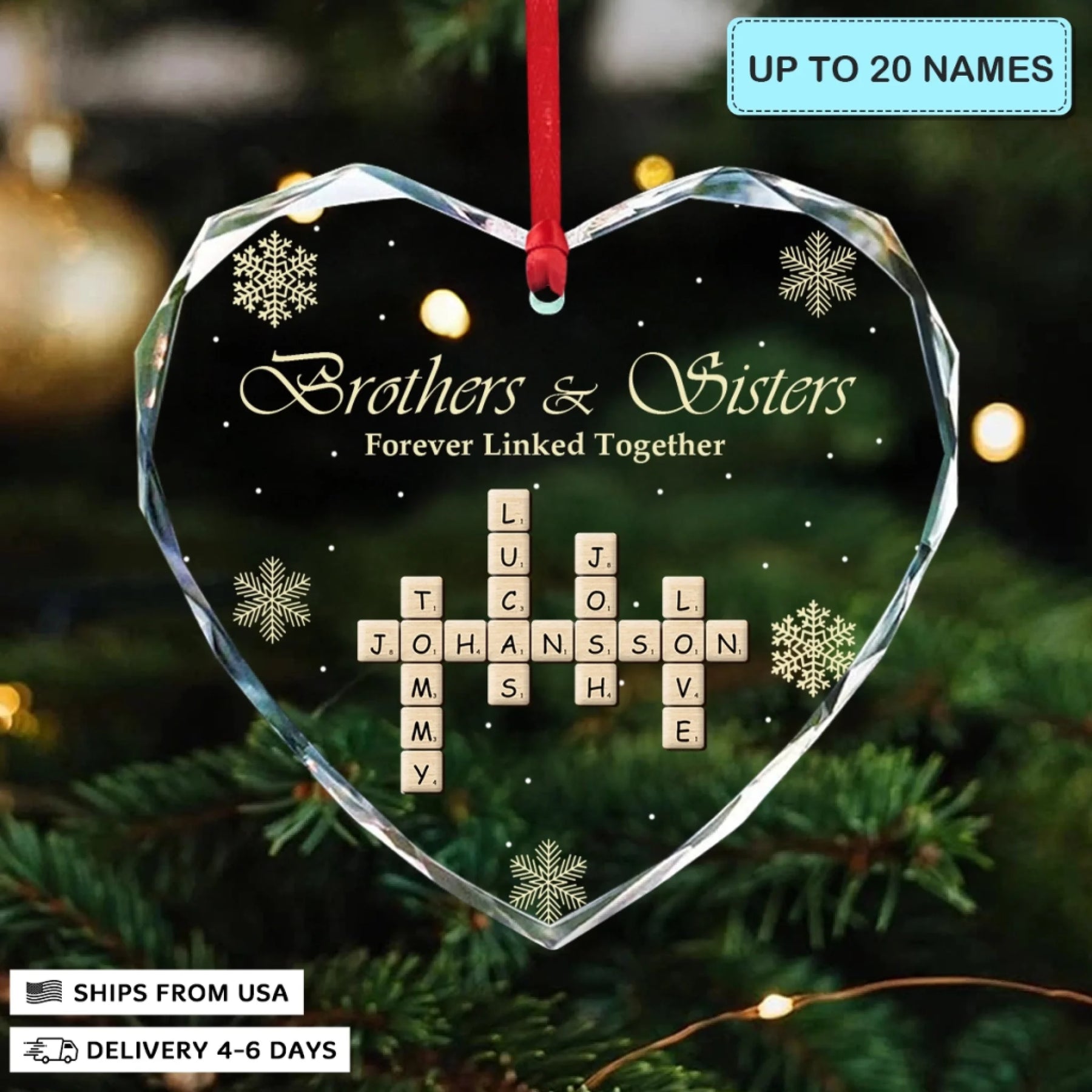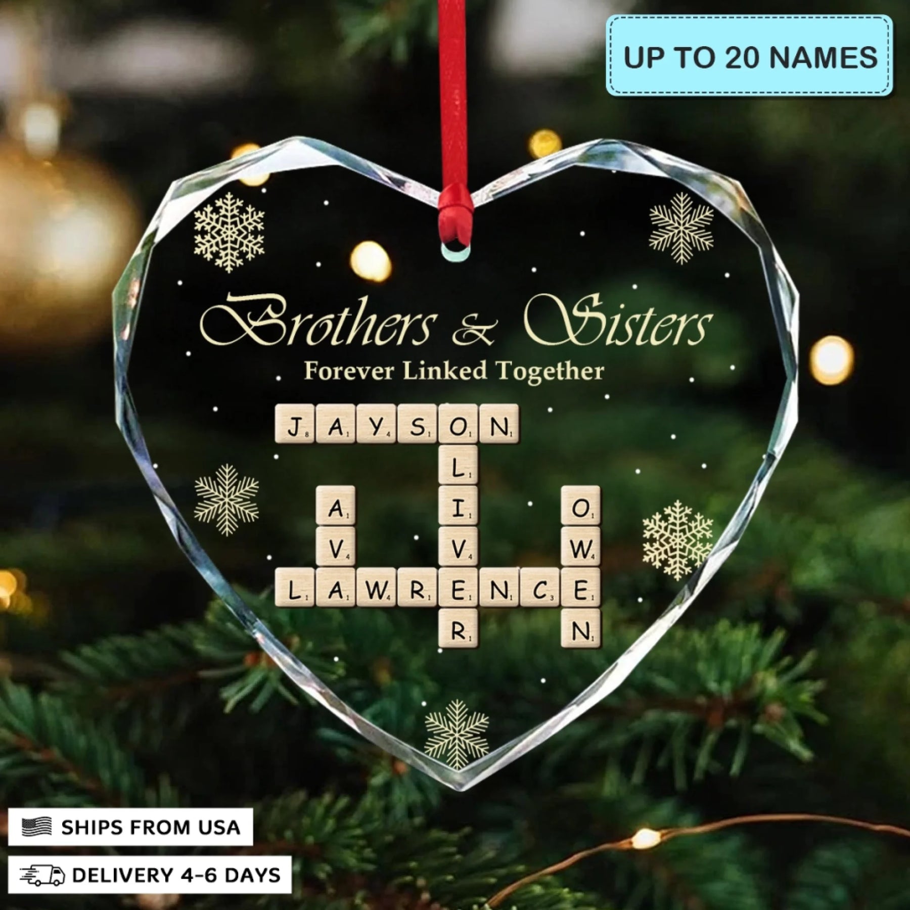 Forever Linked Together - Heart Glass Ornament - Christmas Gift For Siblings, Family Members