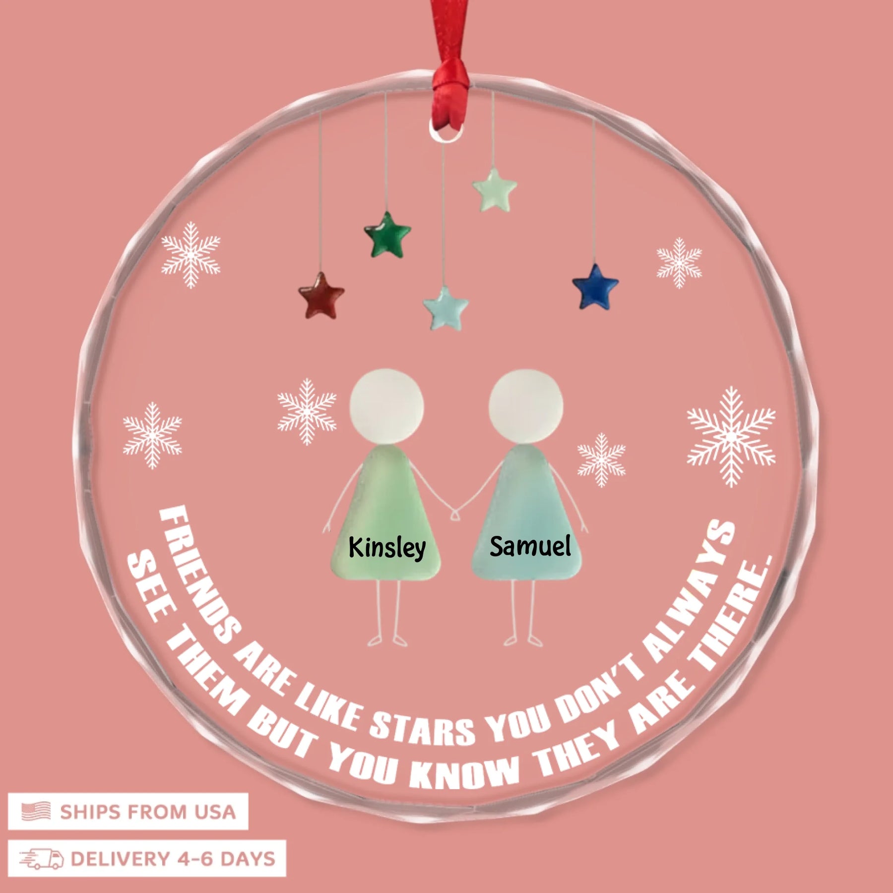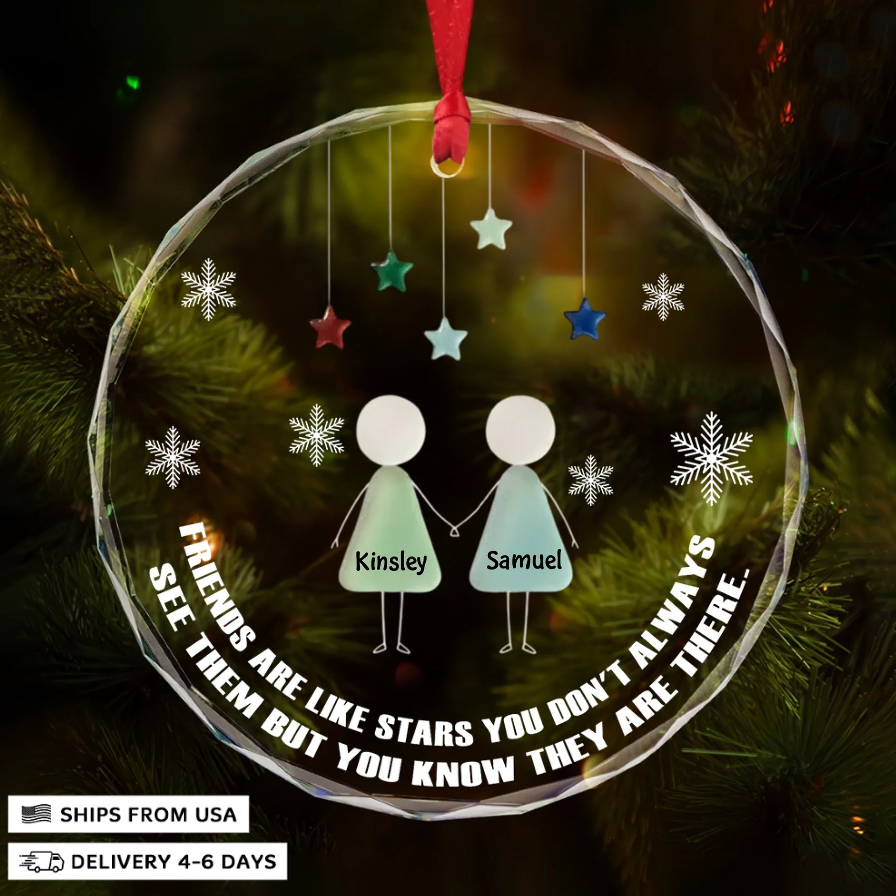 Friends Like Stars - Circle Glass Ornament - Christmas Gift For Besties, Best Friend