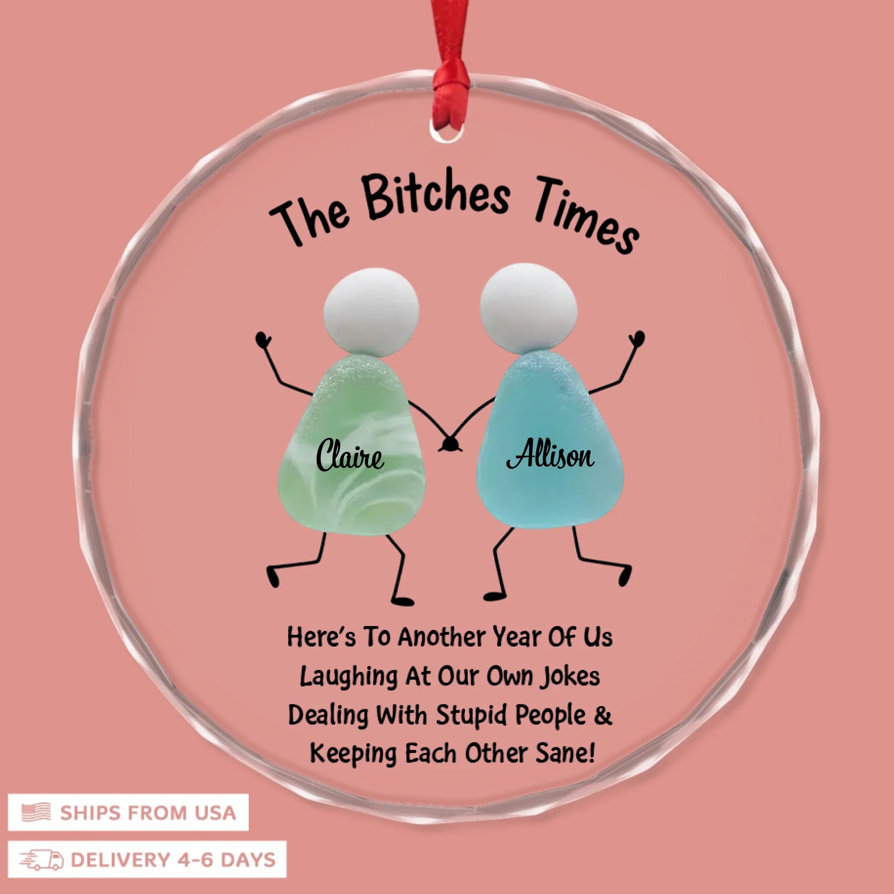 Holly Jolly Friendship - Circle Glass Ornament - Christmas Gift For Besties, Best Friend