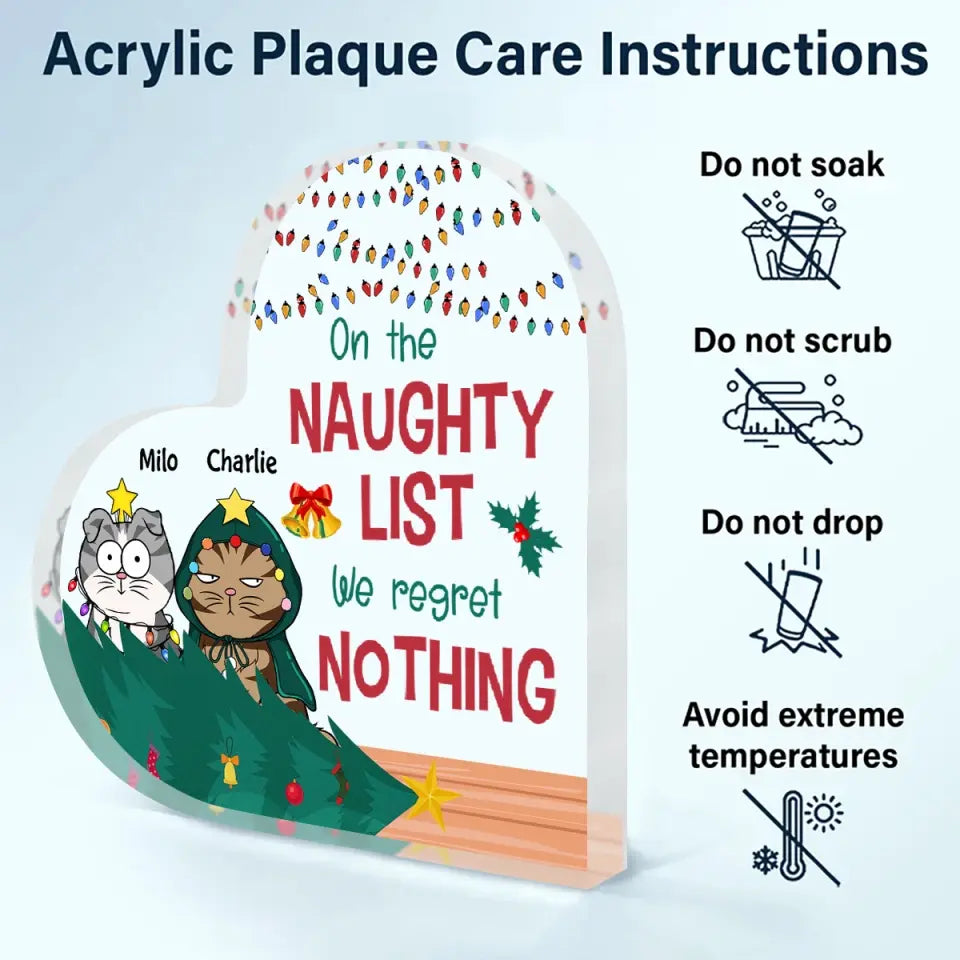 On The Naughty List We Regret Nothing - Personalized Custom Heart-shaped Acrylic Plaque - Halloween Gift For Cat Mom, Cat Dad, Cat Lover, Cat Owner