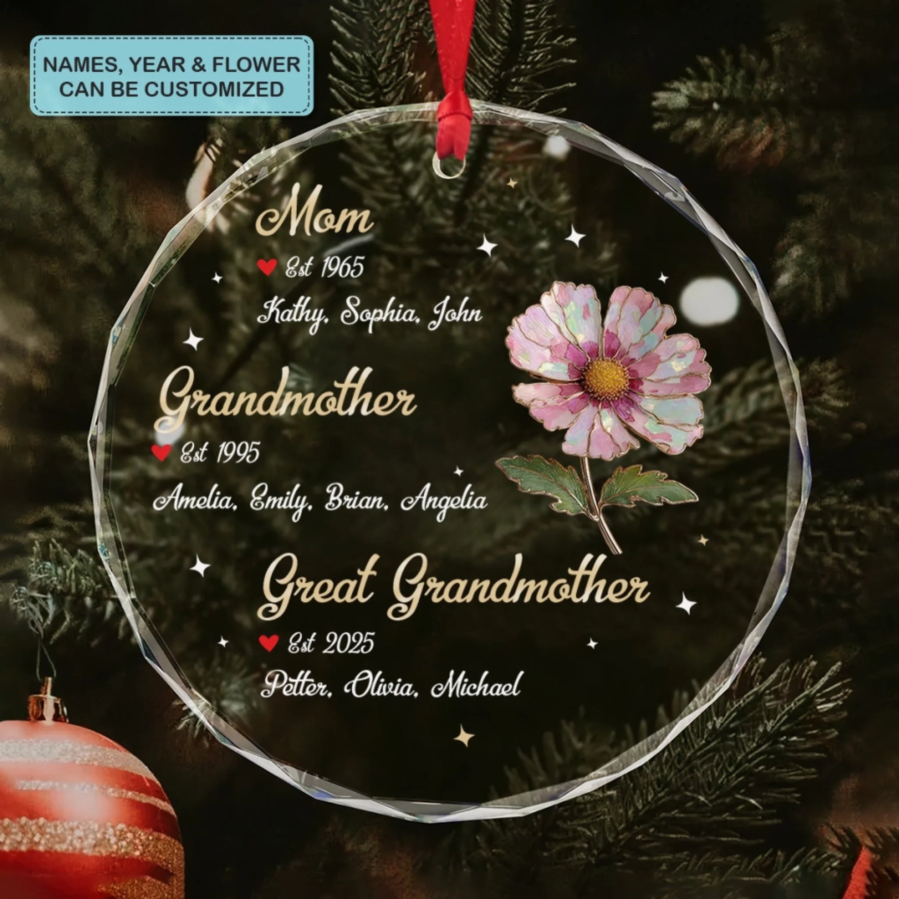 Roots Of Love - Circle Glass Ornament - Christmas Gift For Grandmothers, Great Grandmothers
