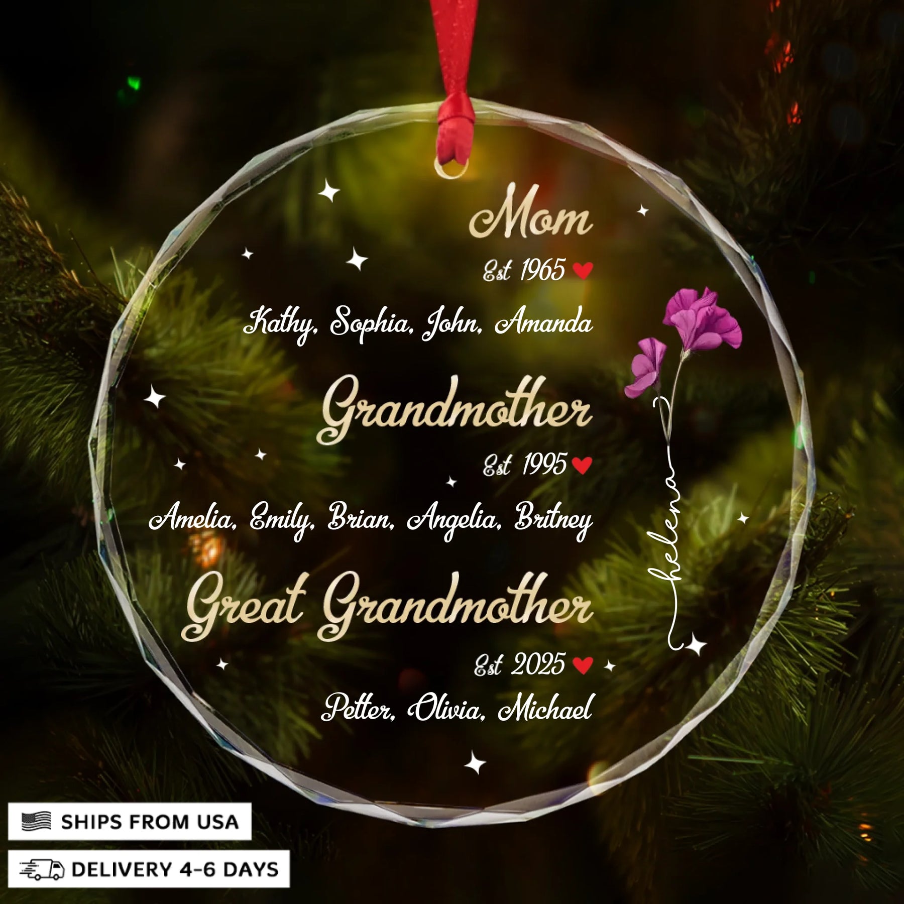 Roots Of Love V2 - Circle Glass Ornament - Christmas Gift For Grandmothers, Great Grandmothers