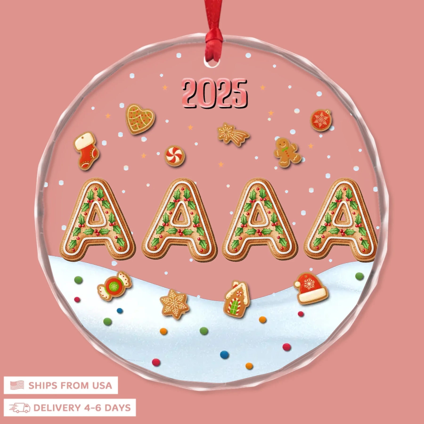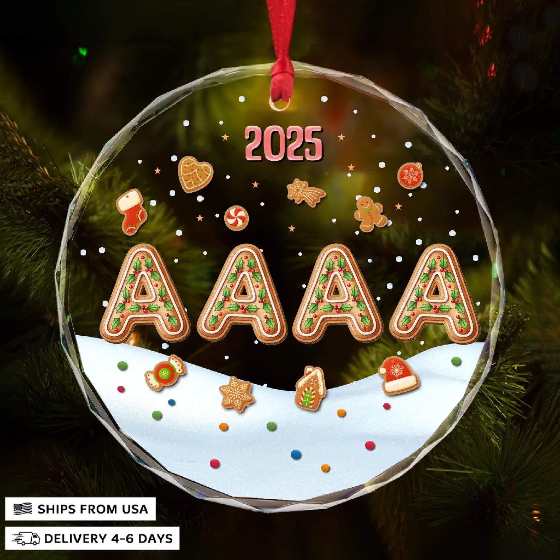 - Packaging: Red satin ribbon for hanging included