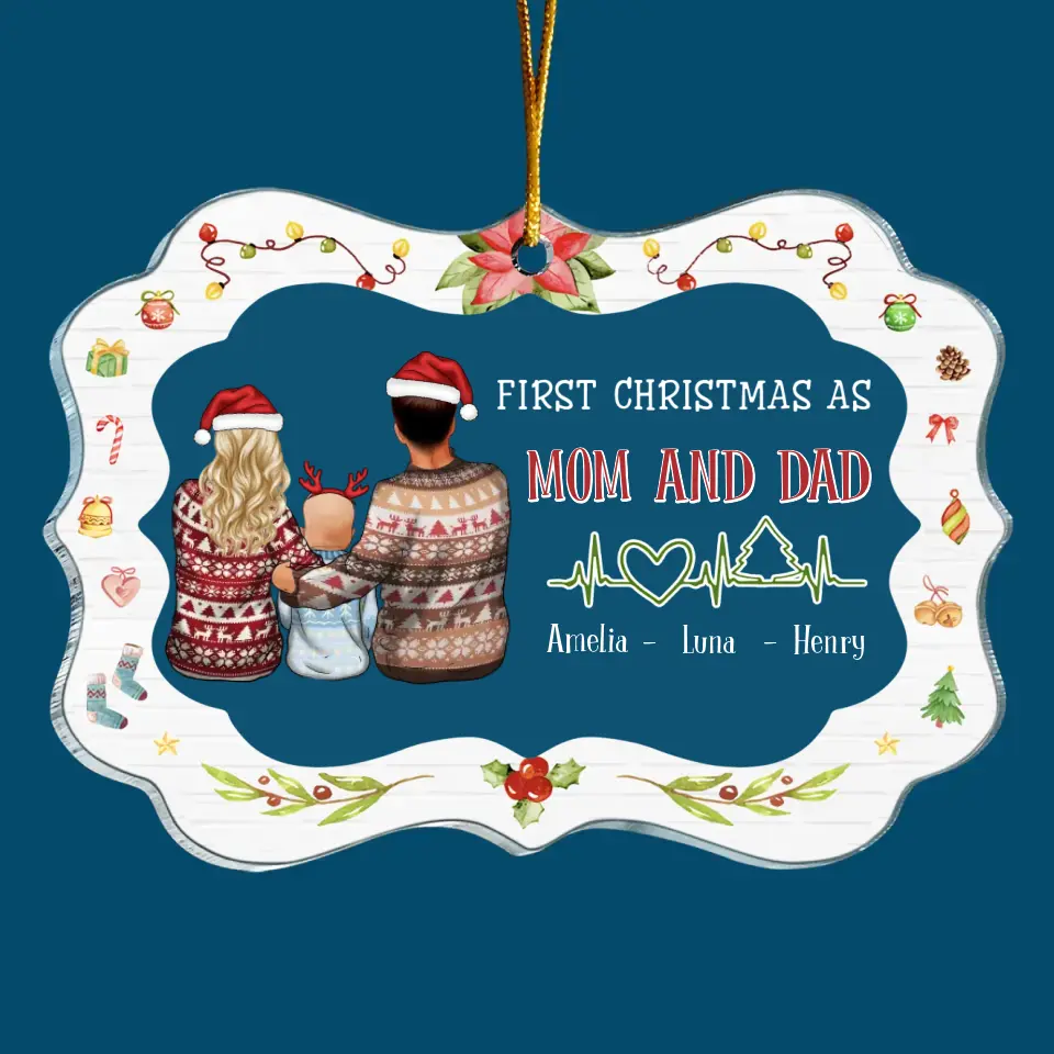 First Christmas As Mom And Dad - Personalized Custom Mica Ornament - Christmas Gift For Family, Family Members