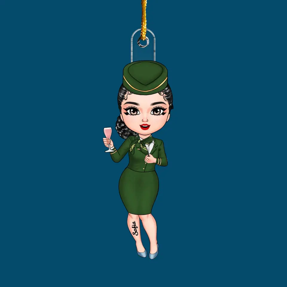 Flight Attendant Chibi Ornament - Personalized Custom Mica Ornament - Christmas Gift For Flight Attendant, Family Members CLA0DM010