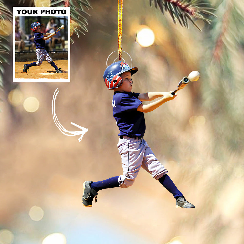 Pitch Young Warrior - Personalized Photo Mica Ornament - Christmas Gift For Sport Loving Kids