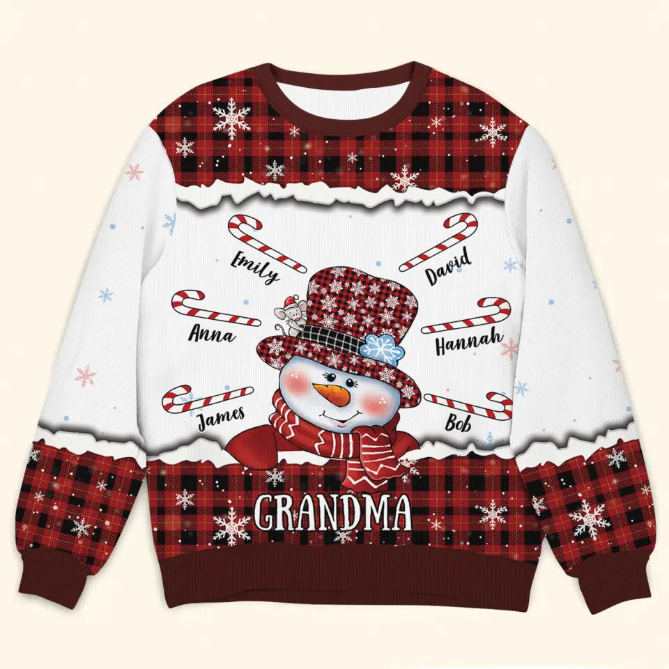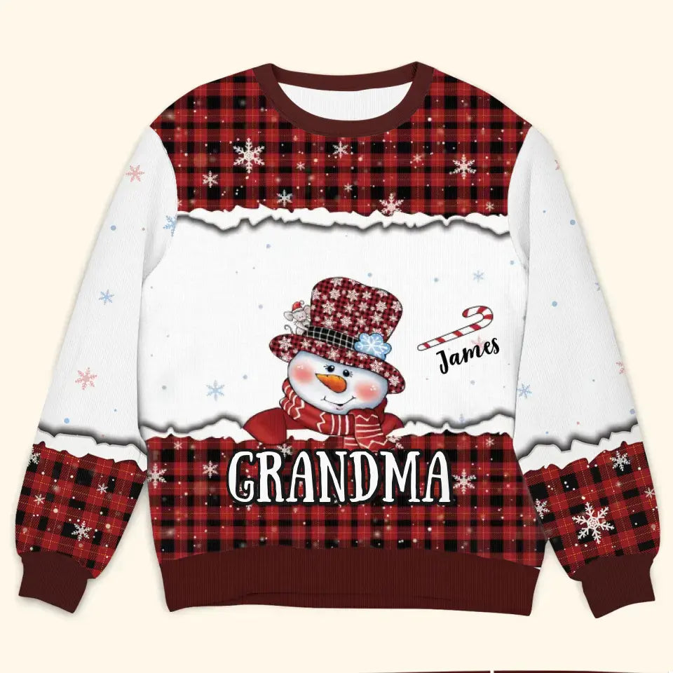Grandma Snowman Heart - Personalized Custom Ugly Sweater - Christmas Gift For Grandma, Mom, Family Members