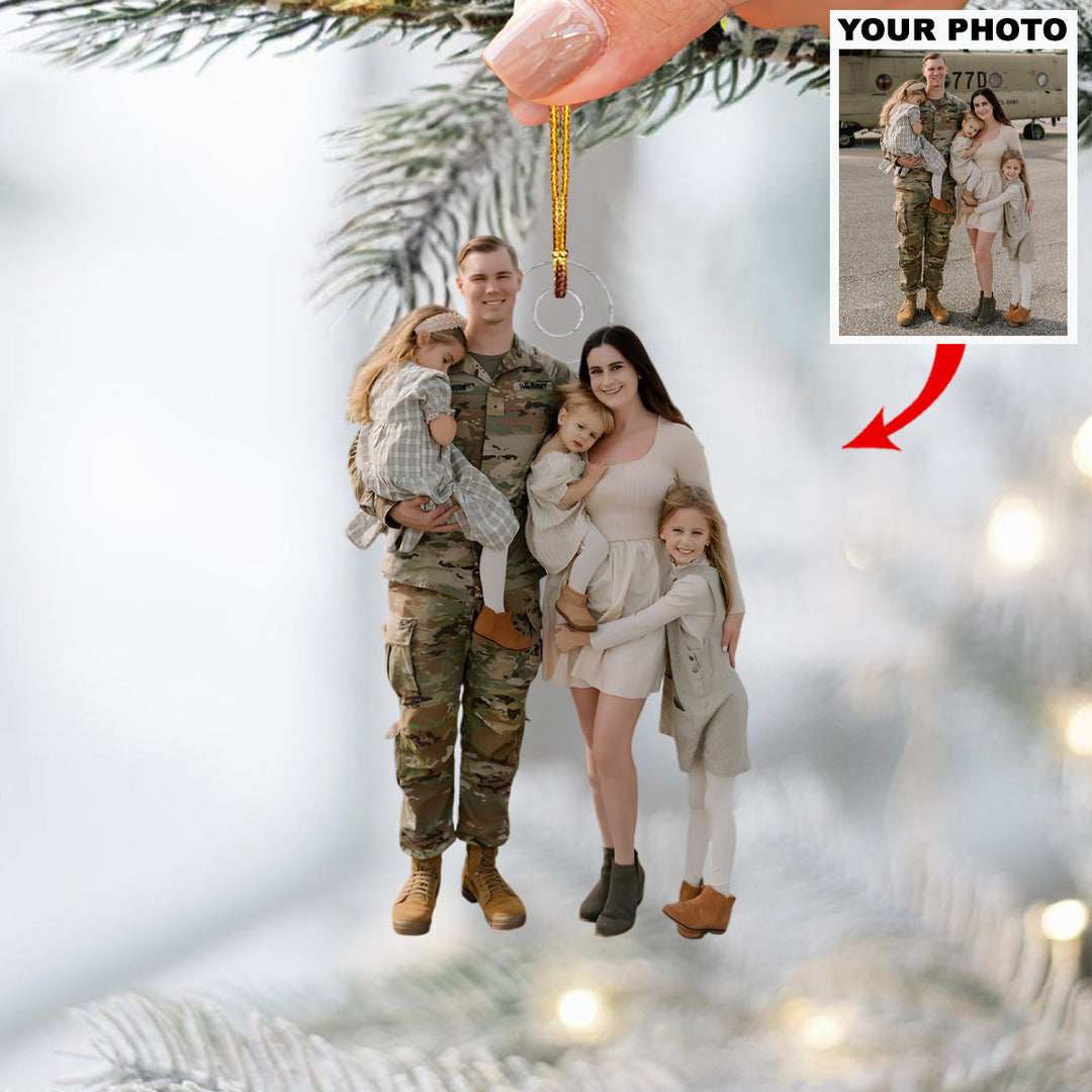 Military Family Bond - Personalized Photo Mica Ornament - Christmas Gift For Family Members, Army Veterans And Service Members