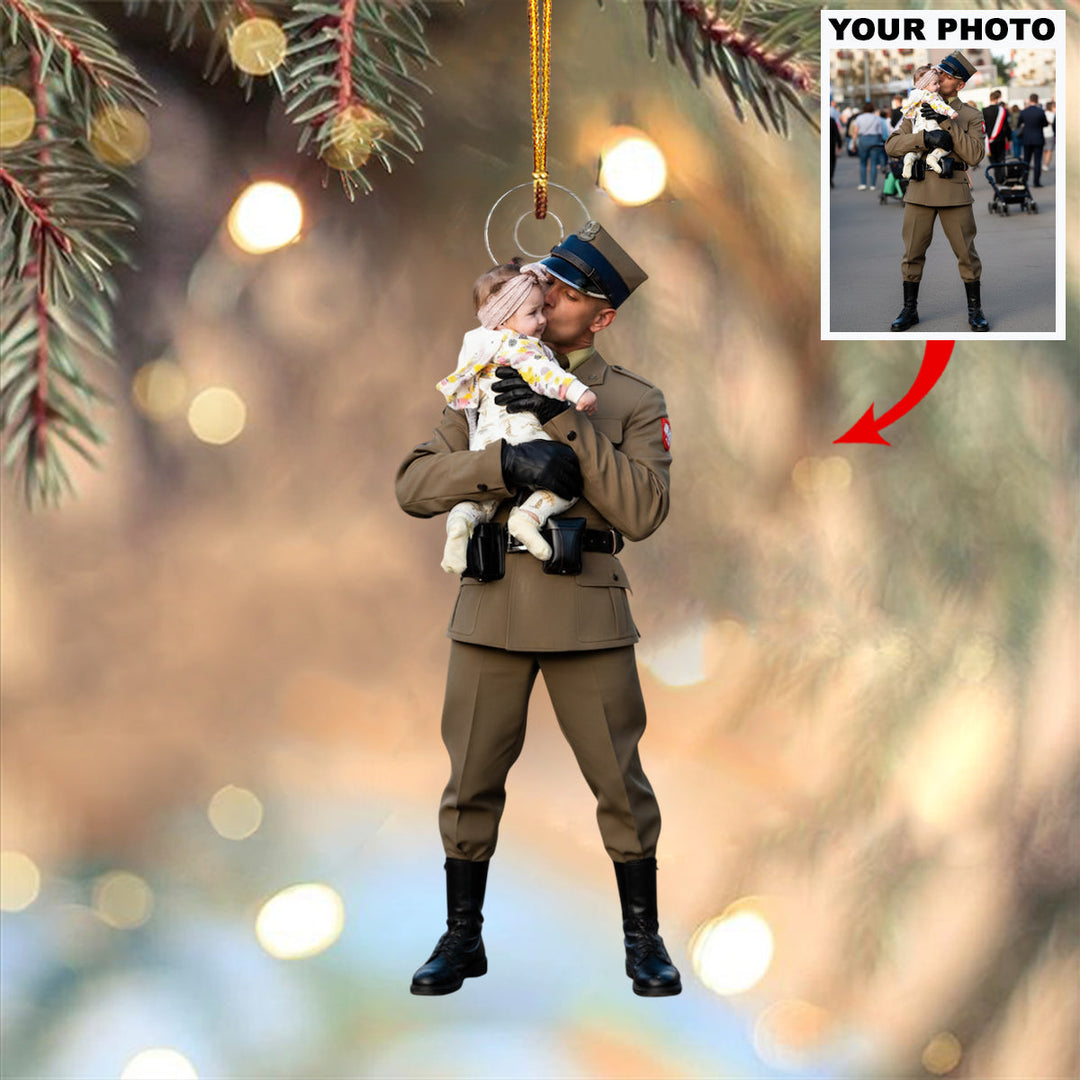 Daddy Homecoming Kiss - Personalized Photo Mica Ornament - Christmas Gift For Family Members, Army Veterans And Service Members