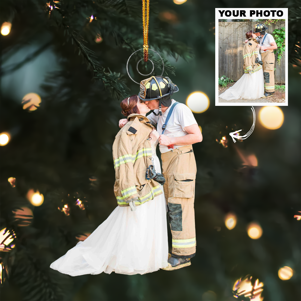 Firefighter Couple - Personalized Custom Photo Mica Ornament - Christmas Gift For Couple, Firefighter, Fireman, Firewoman, Family, Family Members