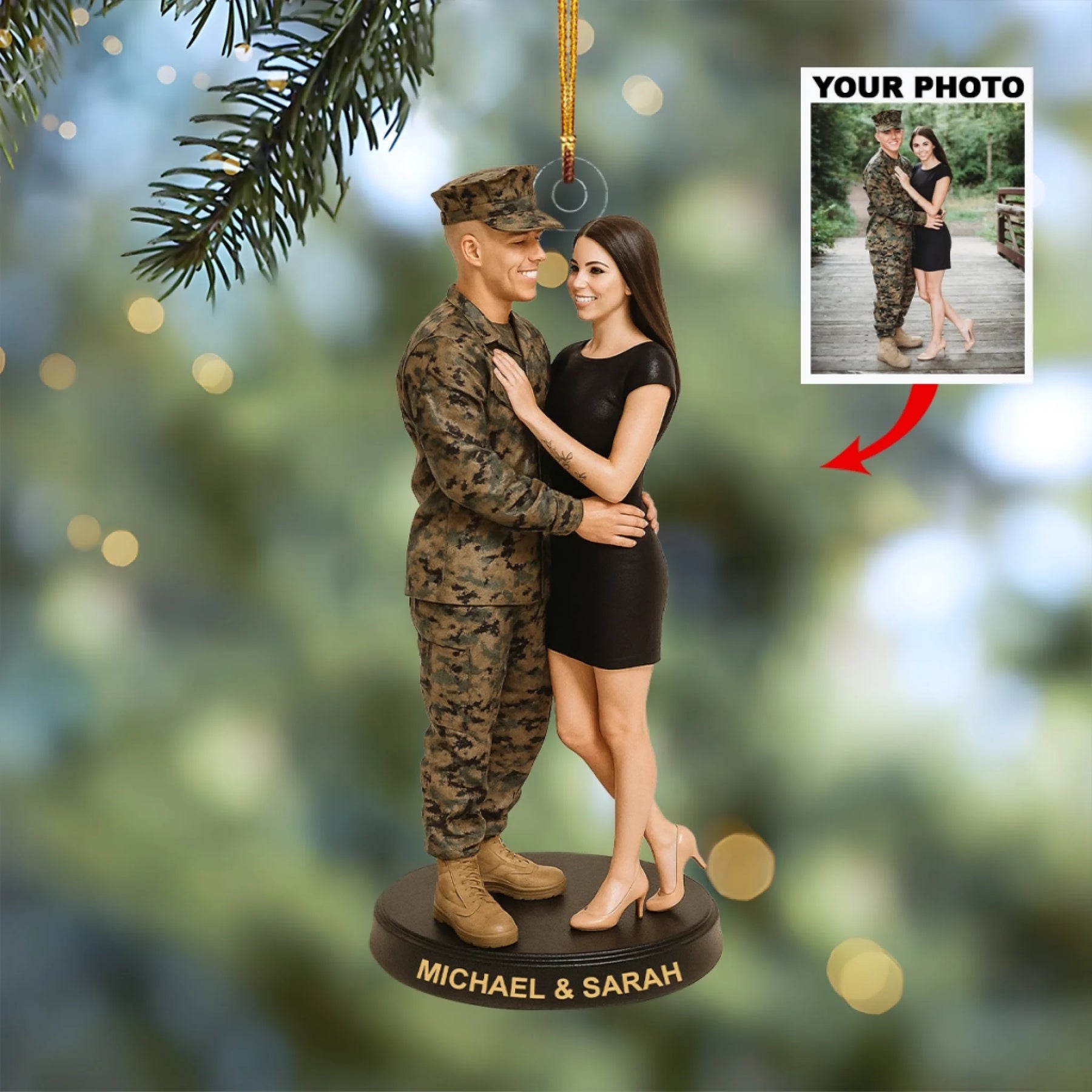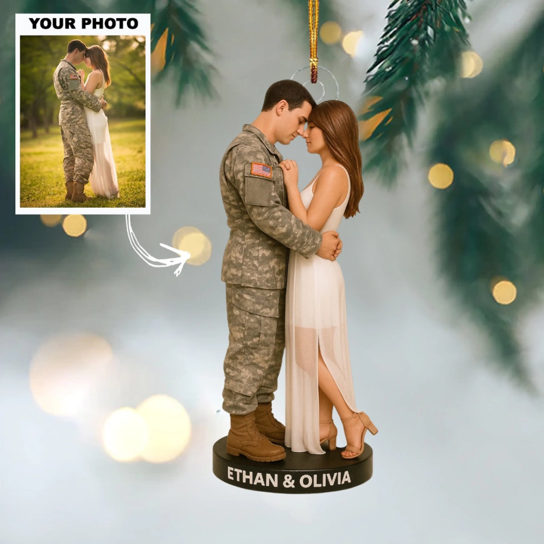 Our Brave Love - Personalized Photo Mica Ornament - Christmas Gift For Military Couple AGP0NL064