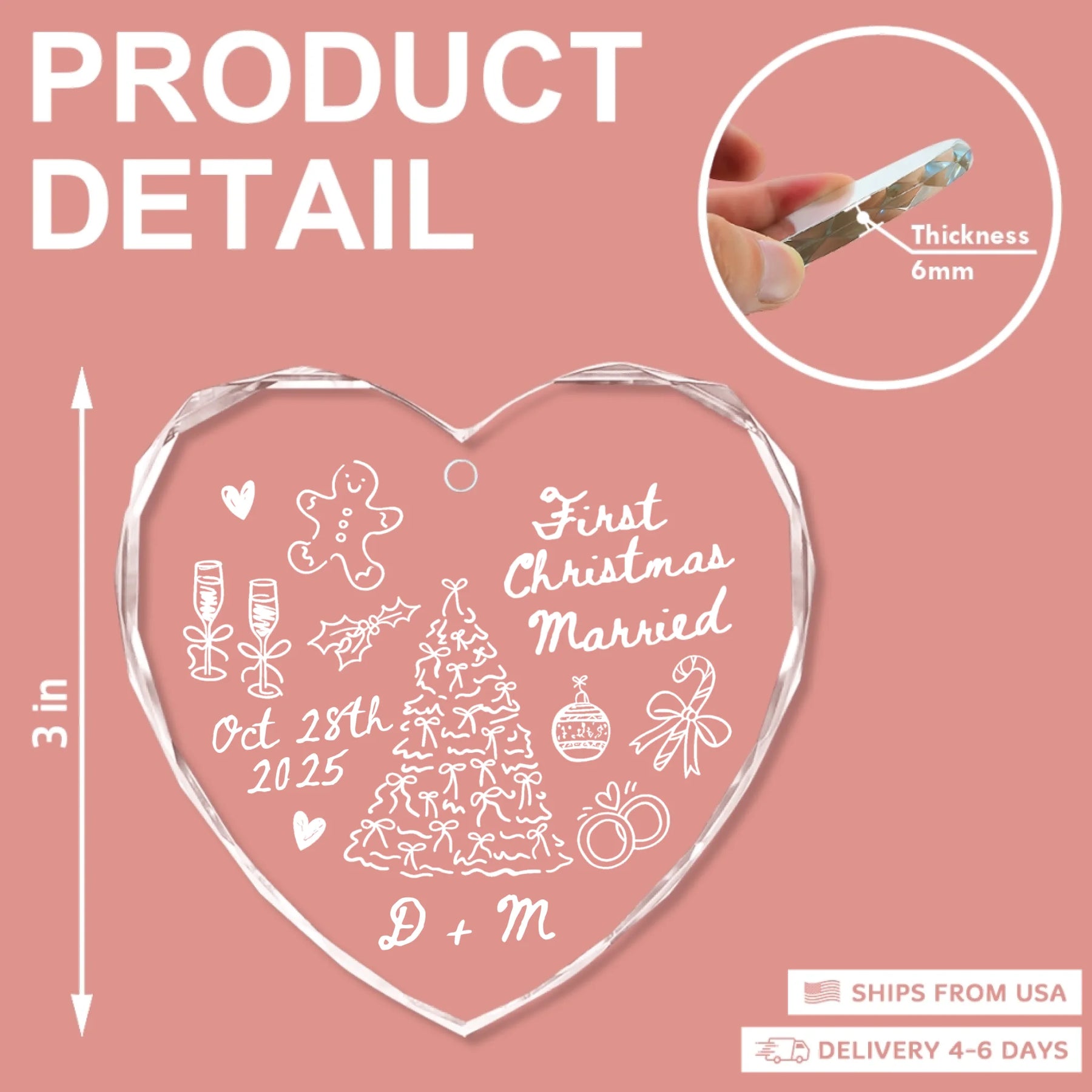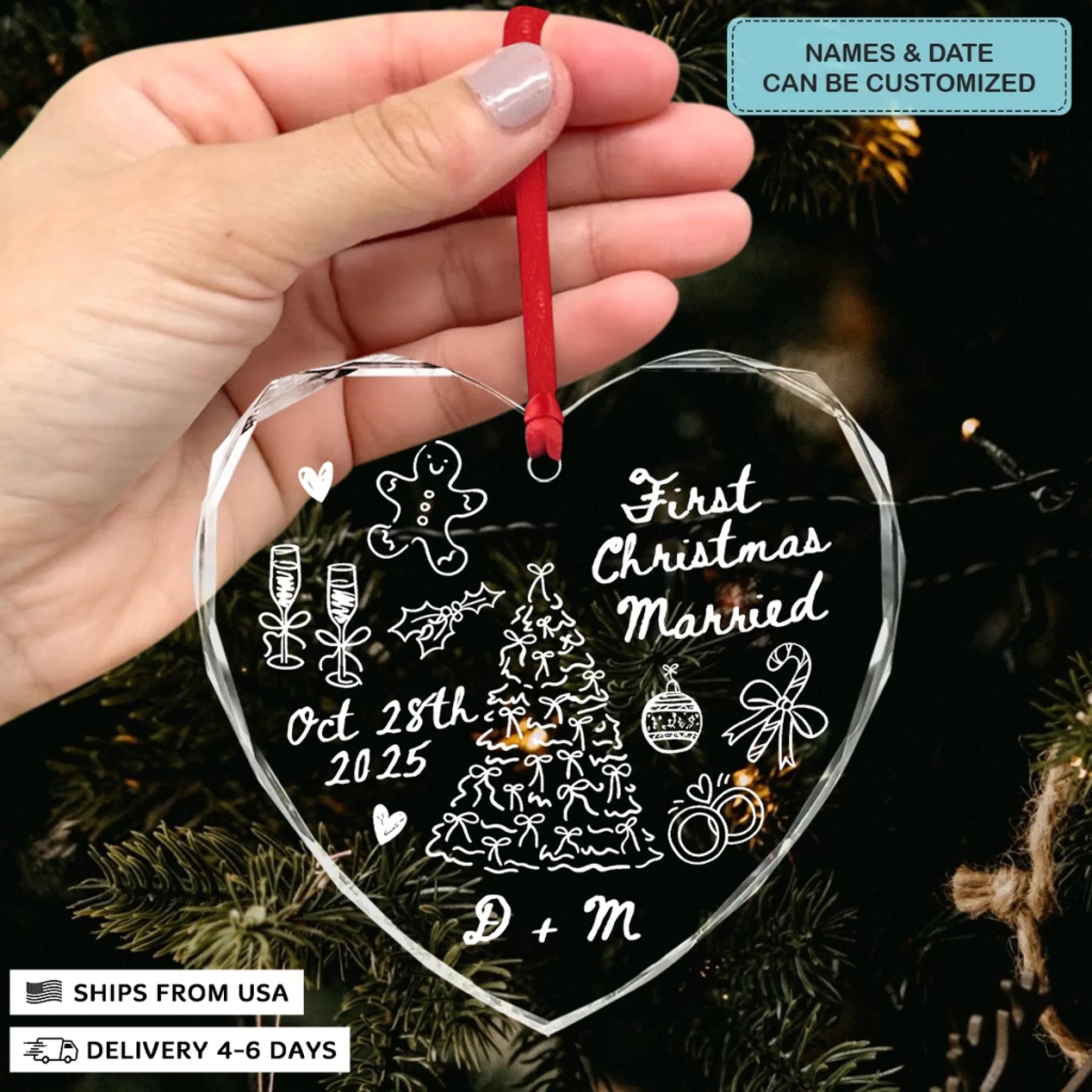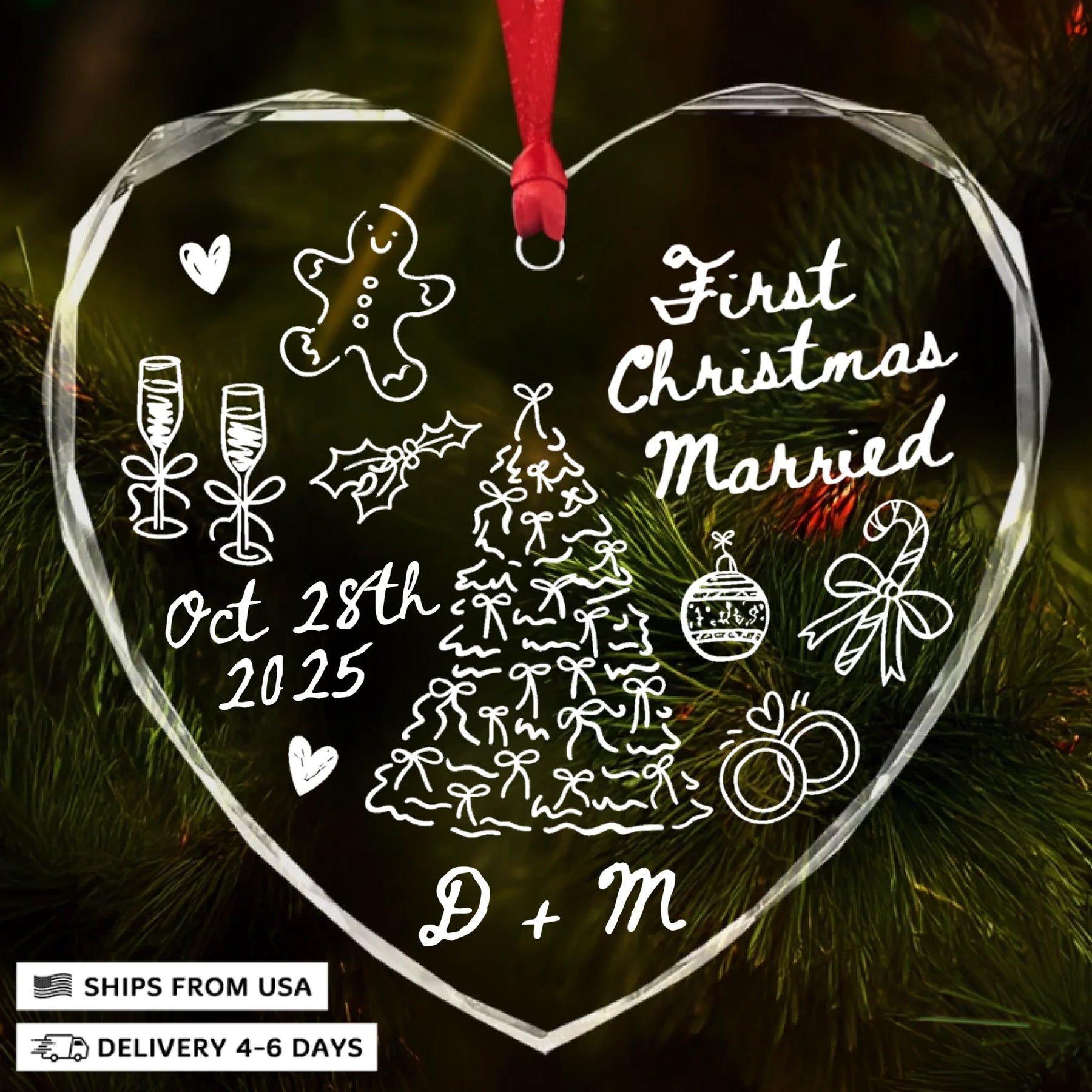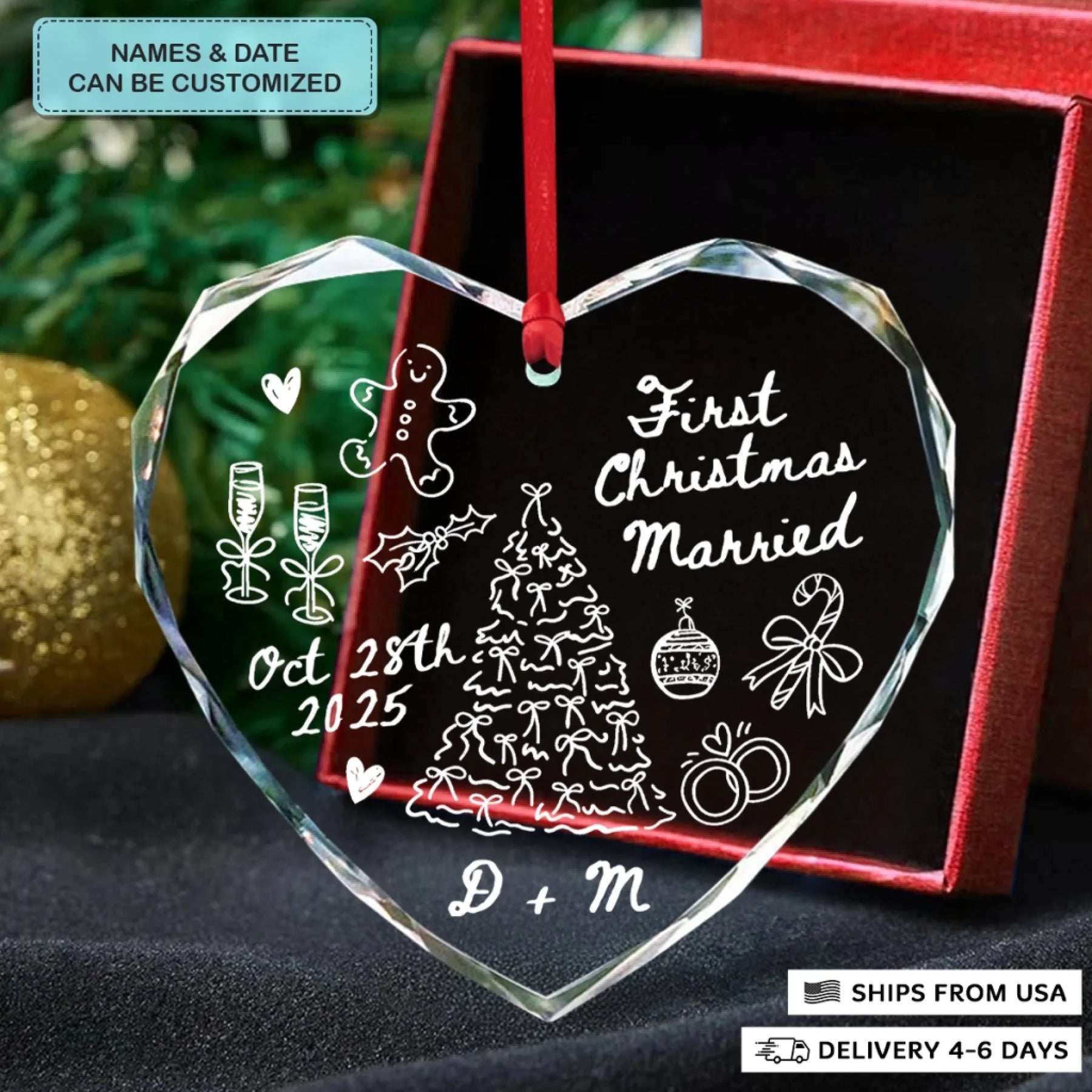 - Packaging: Red satin ribbon for hanging included