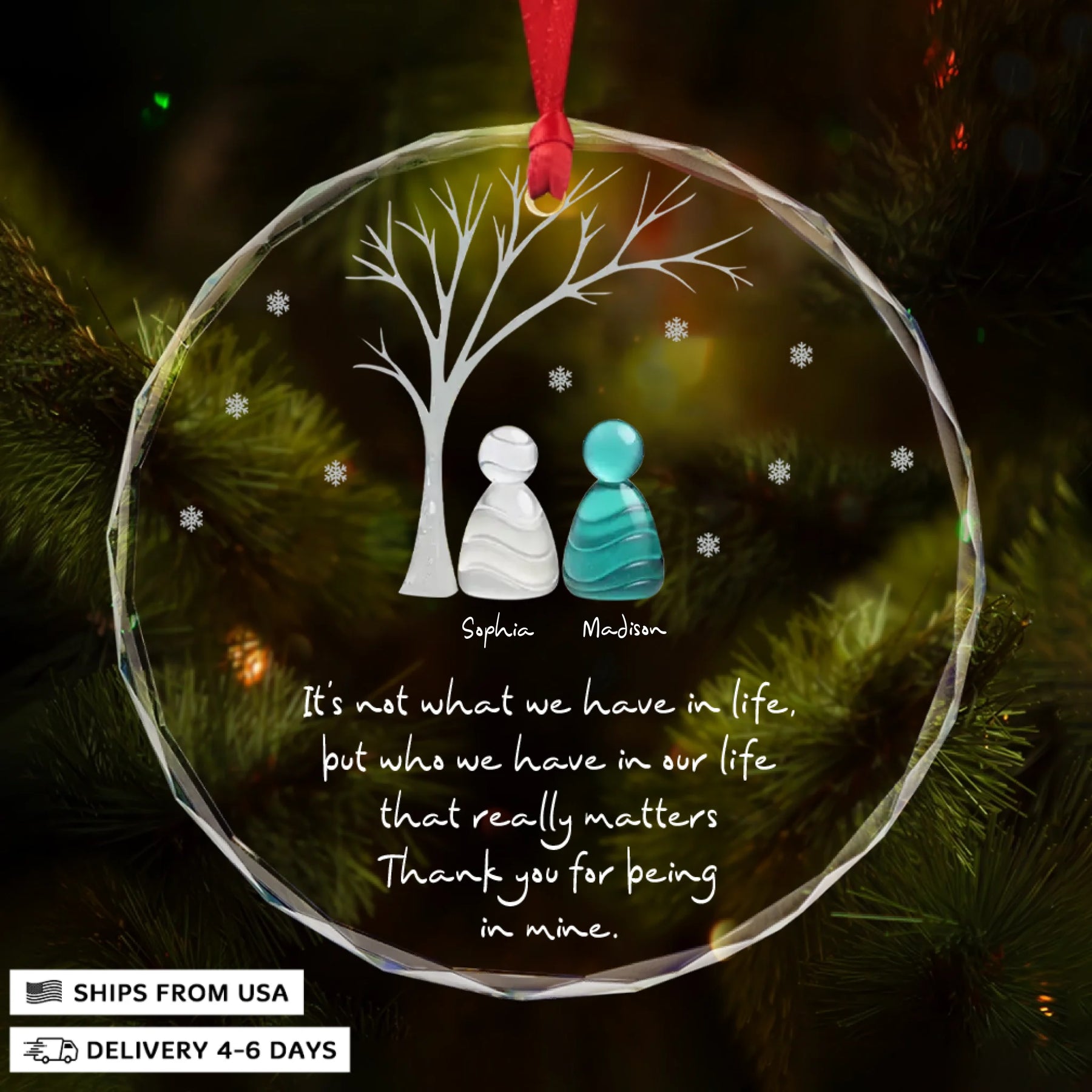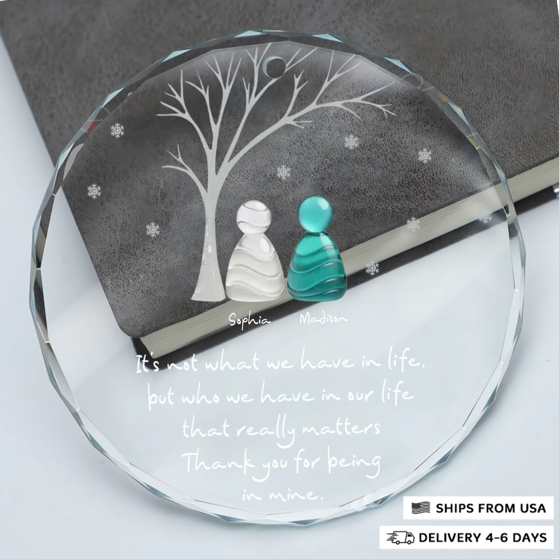 Sea Glass Couple - Circle Glass Ornament - Christmas Gift For Family Members