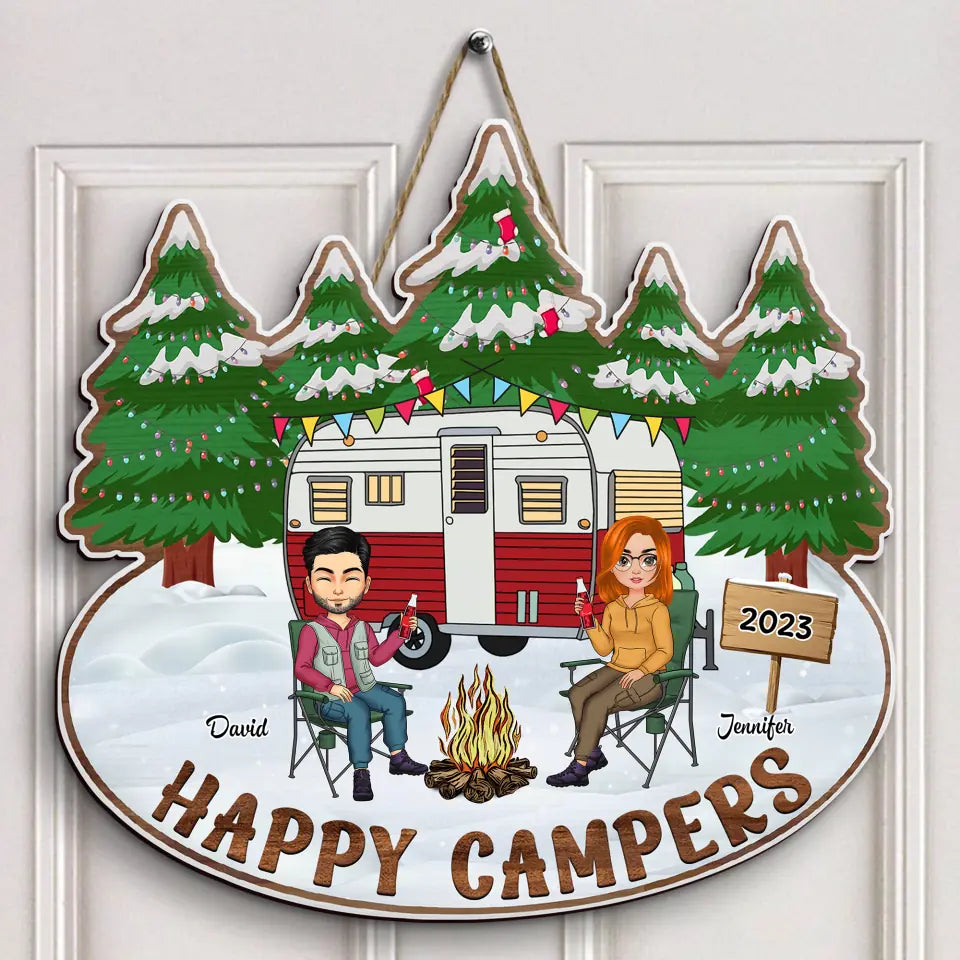 Happy Campers Christmas - Personalized Custom Door Sign - Christmas Gift For Couple, Camping Lover