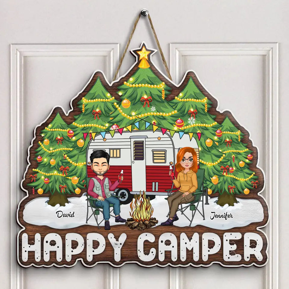 Happy Camper - Personalized Custom Door Sign - Christmas Gift For Couple, Camping Lover