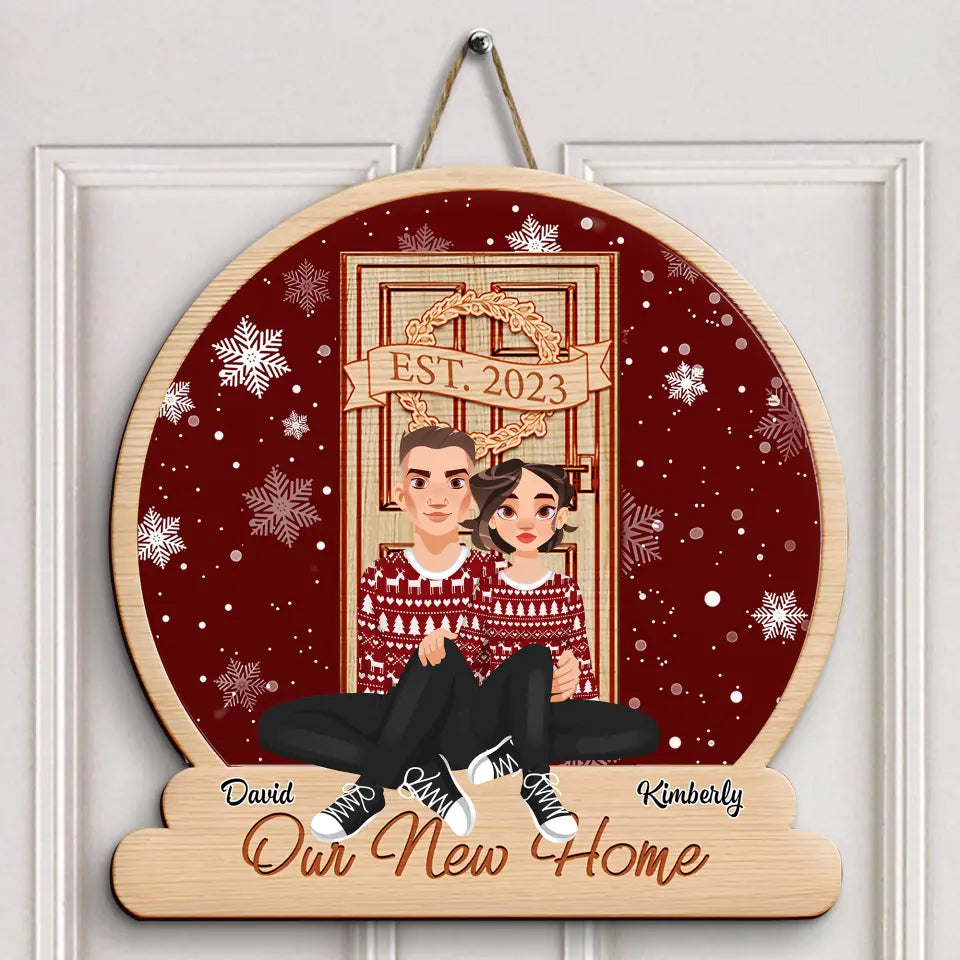 Our New Home EST. 2023 - Personalized Custom Door Sign - Christmas Gift For Couple, Wife, Husband