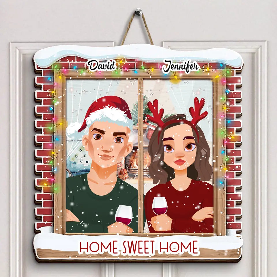 Home Sweet Home Christmas - Personalized Custom Door Sign - Christmas Gift For Couple, Wife, Husband