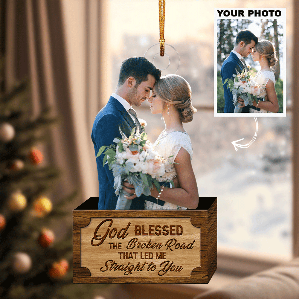 God Blessed The Broken Road That Led Me Straight To You - Personalized Photo Mica Ornament - Christmas, Anniversary Gift For Couple, Wedding Couple UPL0VL017