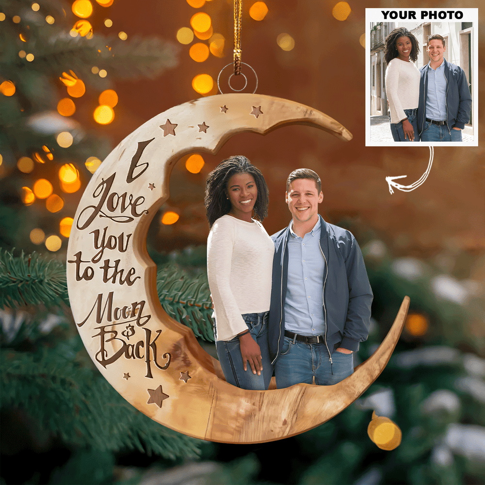 I Love You To The Moon And Back - Personalized Photo Mica Ornament - Christmas, Anniversary Gift For Couple, Wedding Couple