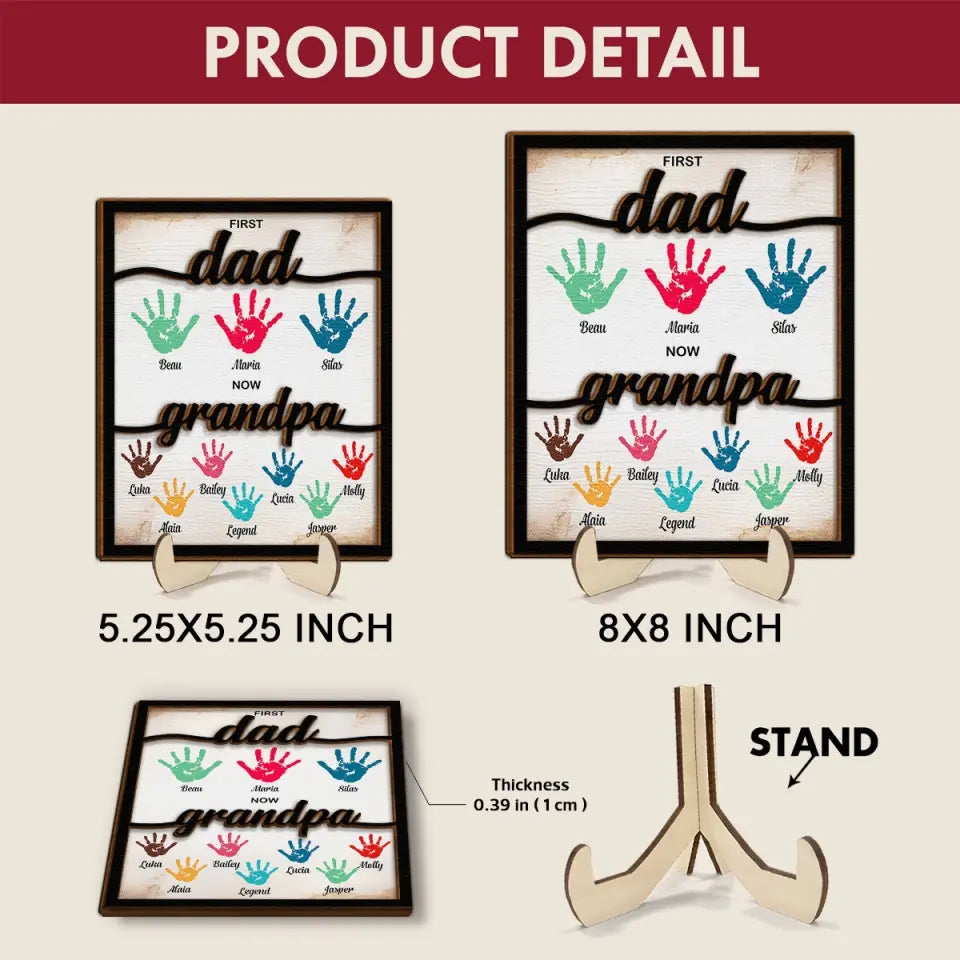 First Dad Now Grandpa - Personalized Custom 2-Layer Wooden Plaque - Father's Day Gift For Dad, Grandpa