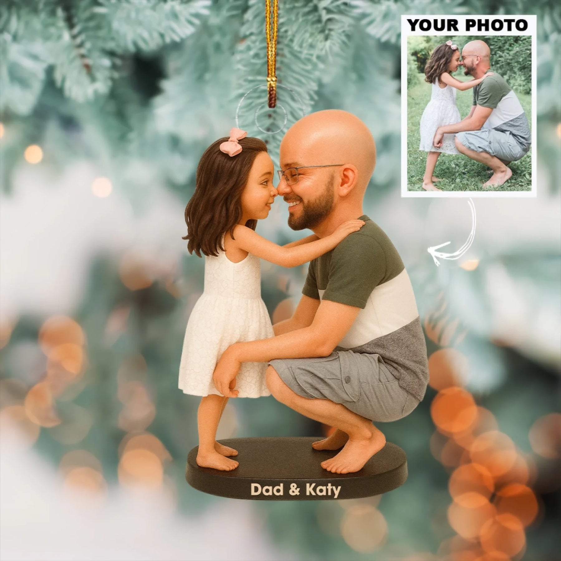 NOTE: Our custom ornaments are made in an artistic cartoon style, following a similar pose and style as shown in our examples.