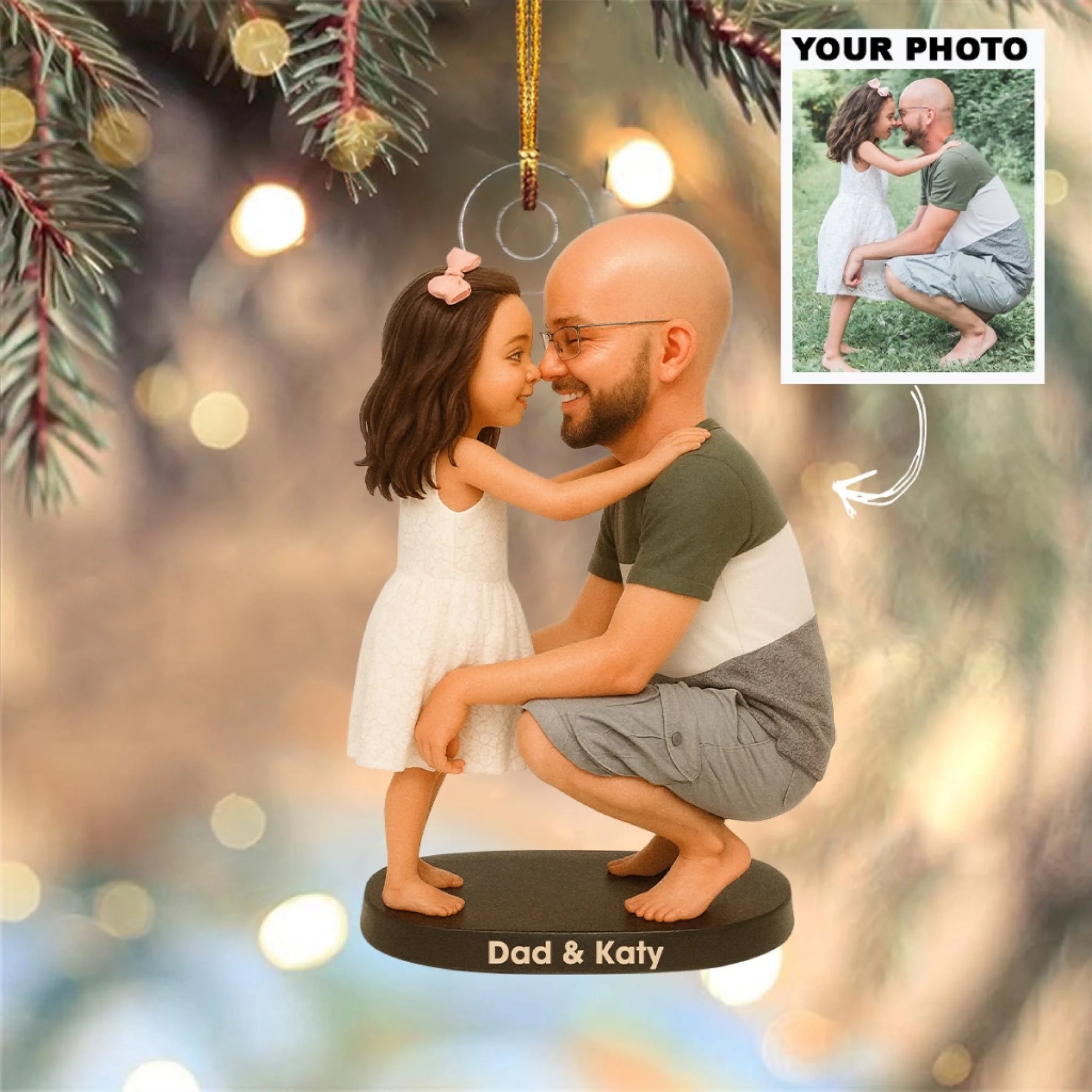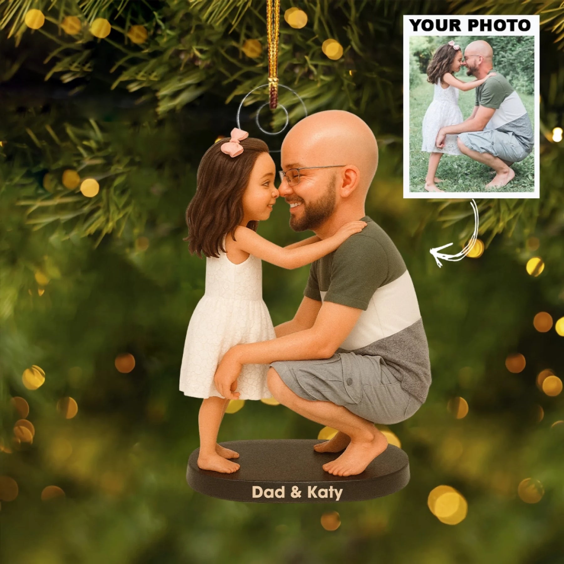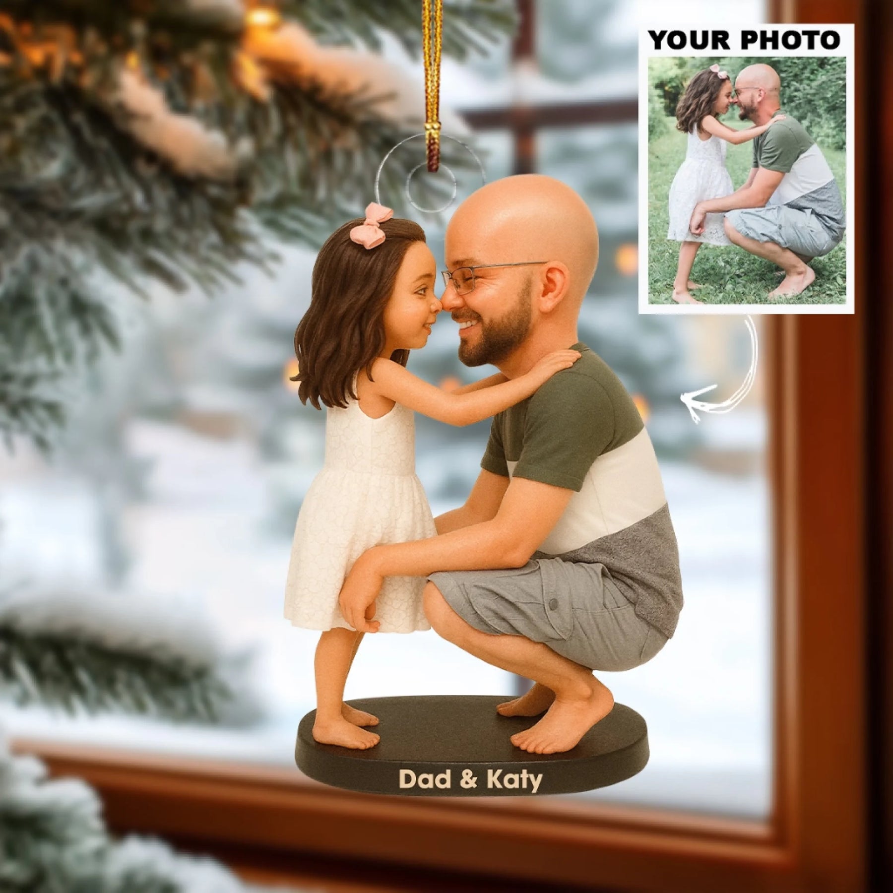 Our custom ornaments are made in an artistic cartoon style, following a similar pose and style as shown in our examples. Final colors, details, and expressions may vary slightly and won’t be an exact replica of your photo.