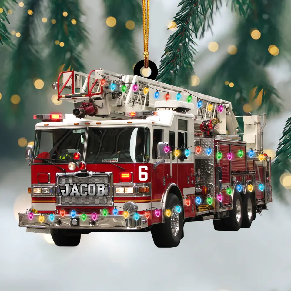 Personalized Mica Ornament - Gift For Firefighter - Fire Truck Christmas ARND037