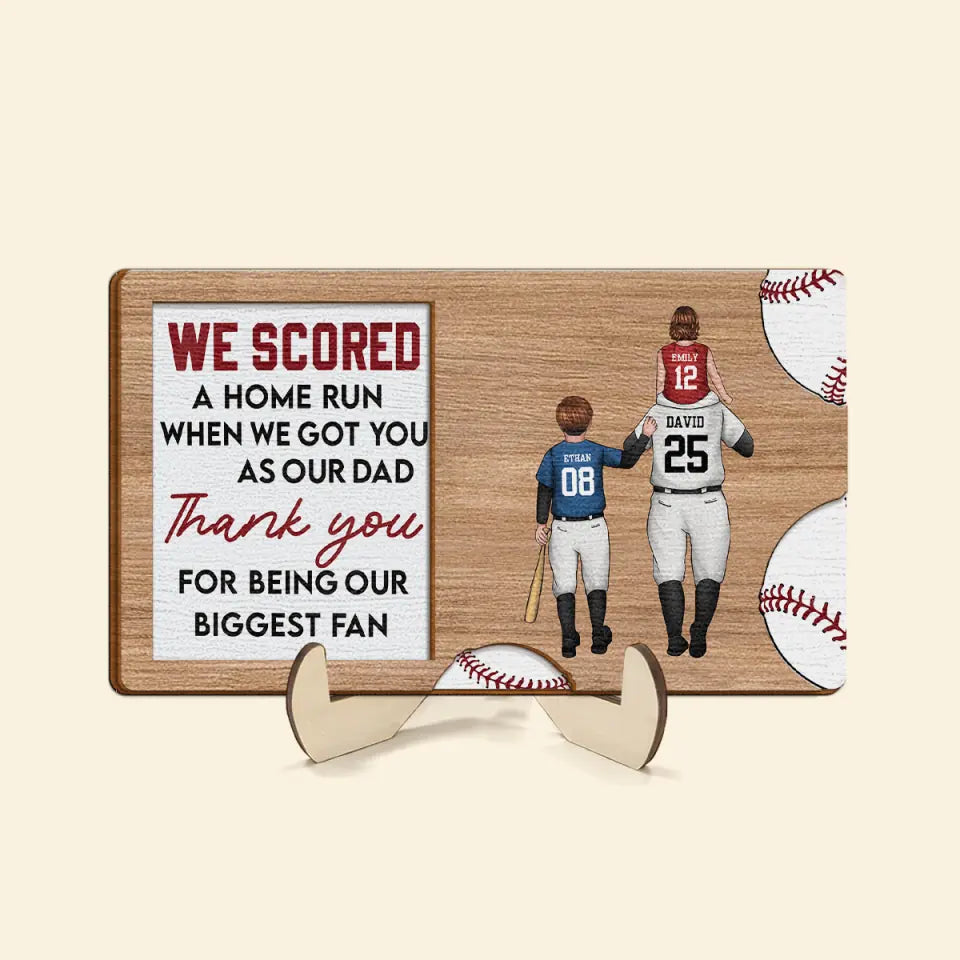 We Score A Home Run - Personalized Custom 2-Layer Wooden Plaque - Father's Day Gift For Dad